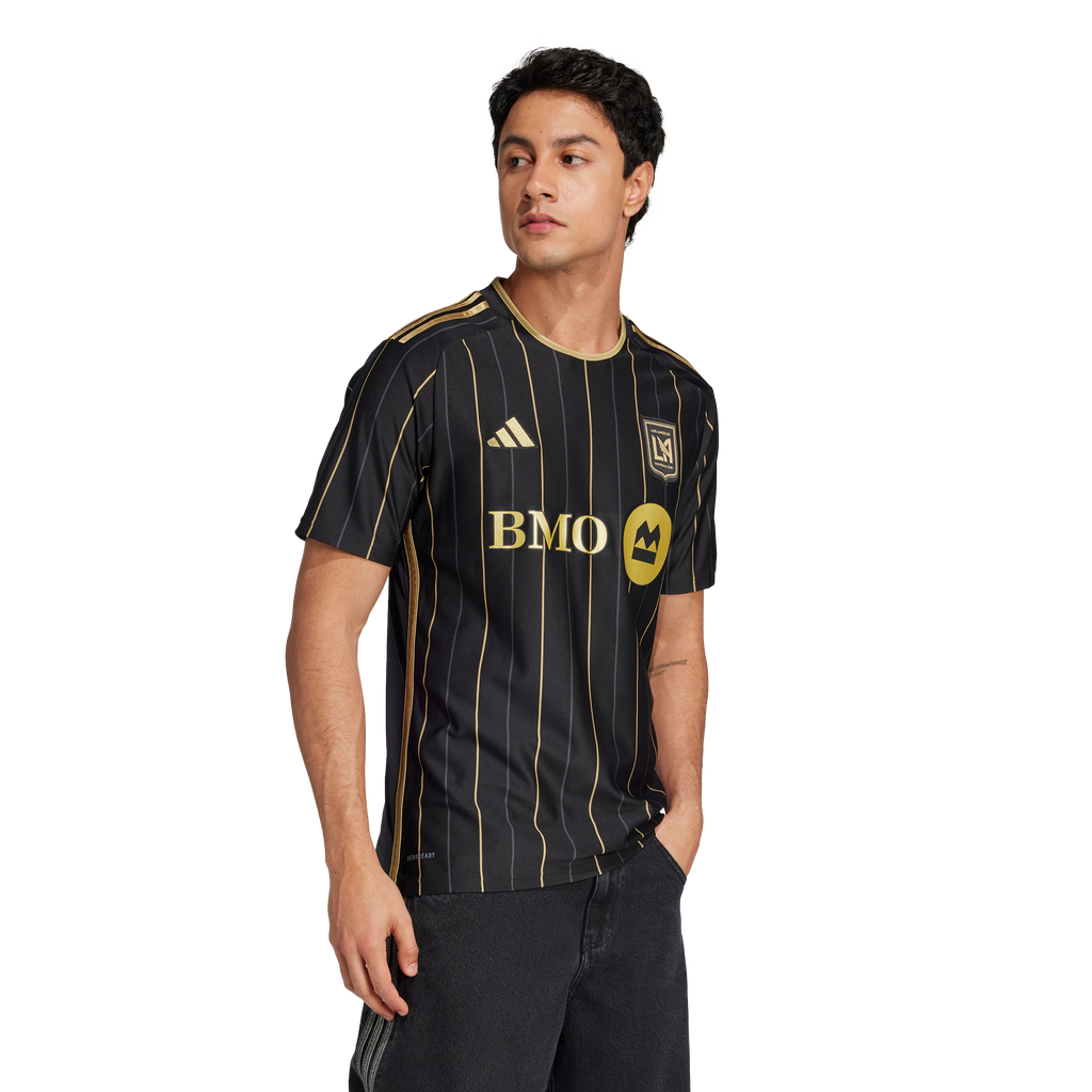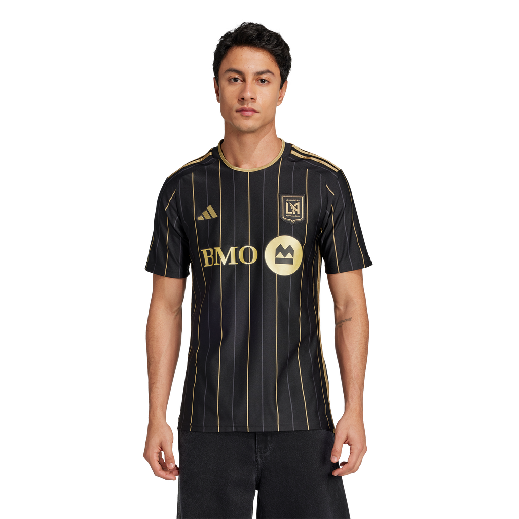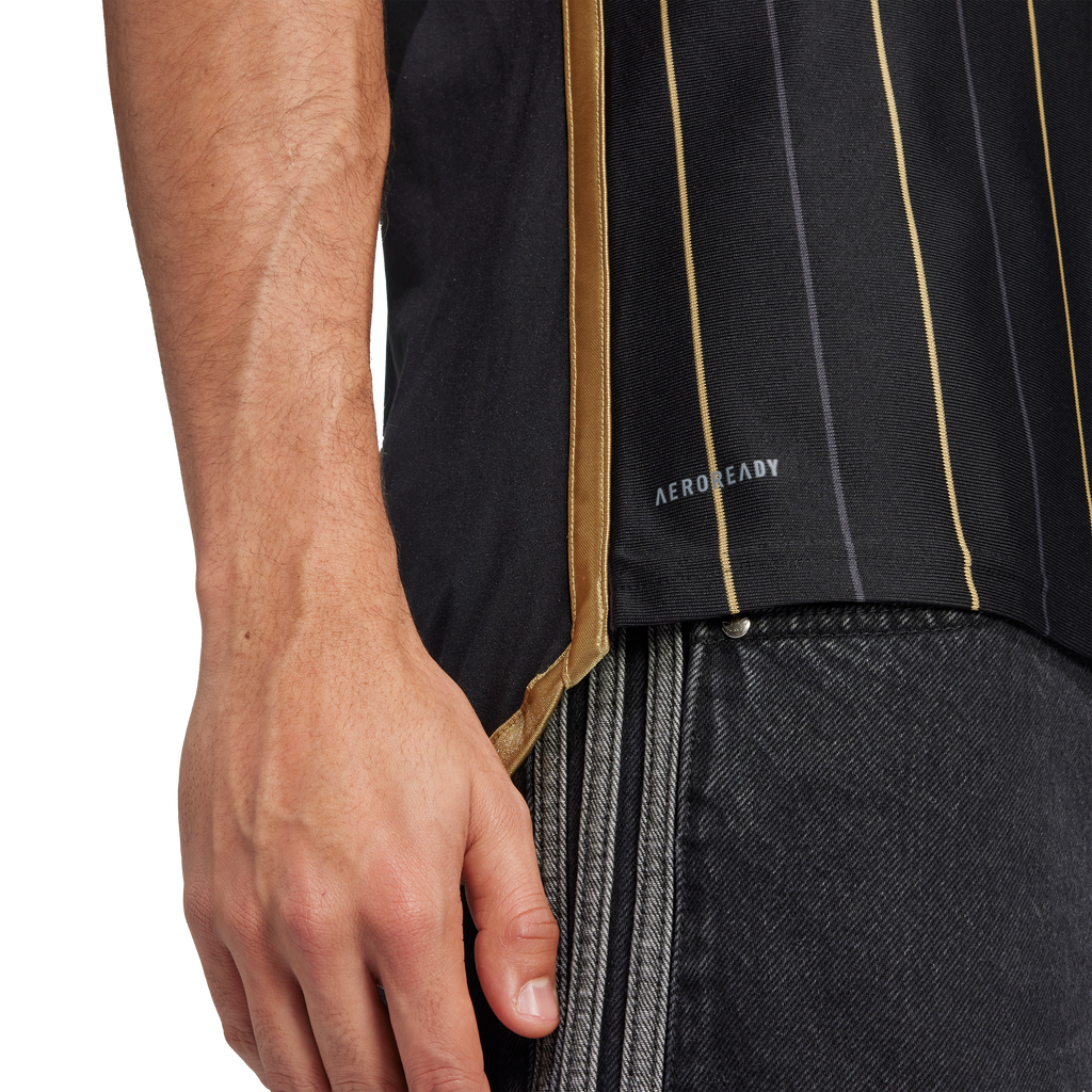 Make a soccer statement in this slick Los Angeles Football Club jersey from adidas. Keeping things classy with a minimalist look punctuated on the front by golden pinstripes, this shirt was created for fans. AEROREADY keeps you dry no matter how intense the on-pitch action gets. A club badge and "Shoulder to Shoulder" sign-off add those all-important final details.This product is made with 100% recycled materials. By reusing materials that have already been created, we help to reduce waste and our reliance on finite resources and reduce the footprint of the products we make.