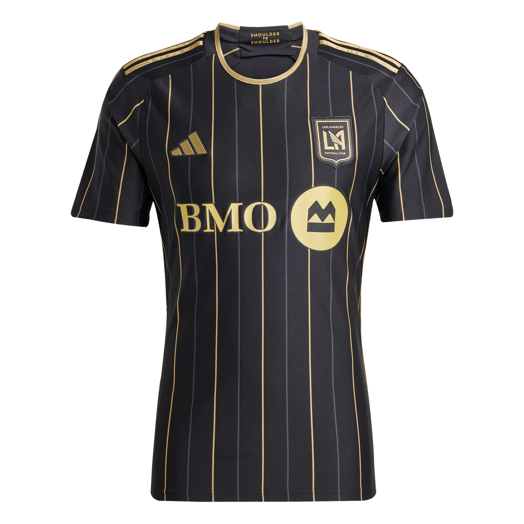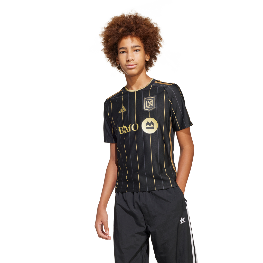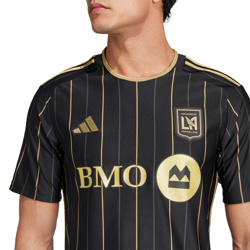 Make a soccer statement in this slick Los Angeles Football Club jersey from adidas. Keeping things classy with a minimalist look punctuated on the front by golden pinstripes, this shirt was created for fans. AEROREADY keeps you dry no matter how intense the on-pitch action gets. A club badge and "Shoulder to Shoulder" sign-off add those all-important final details.This product is made with 100% recycled materials. By reusing materials that have already been created, we help to reduce waste and our reliance on finite resources and reduce the footprint of the products we make.