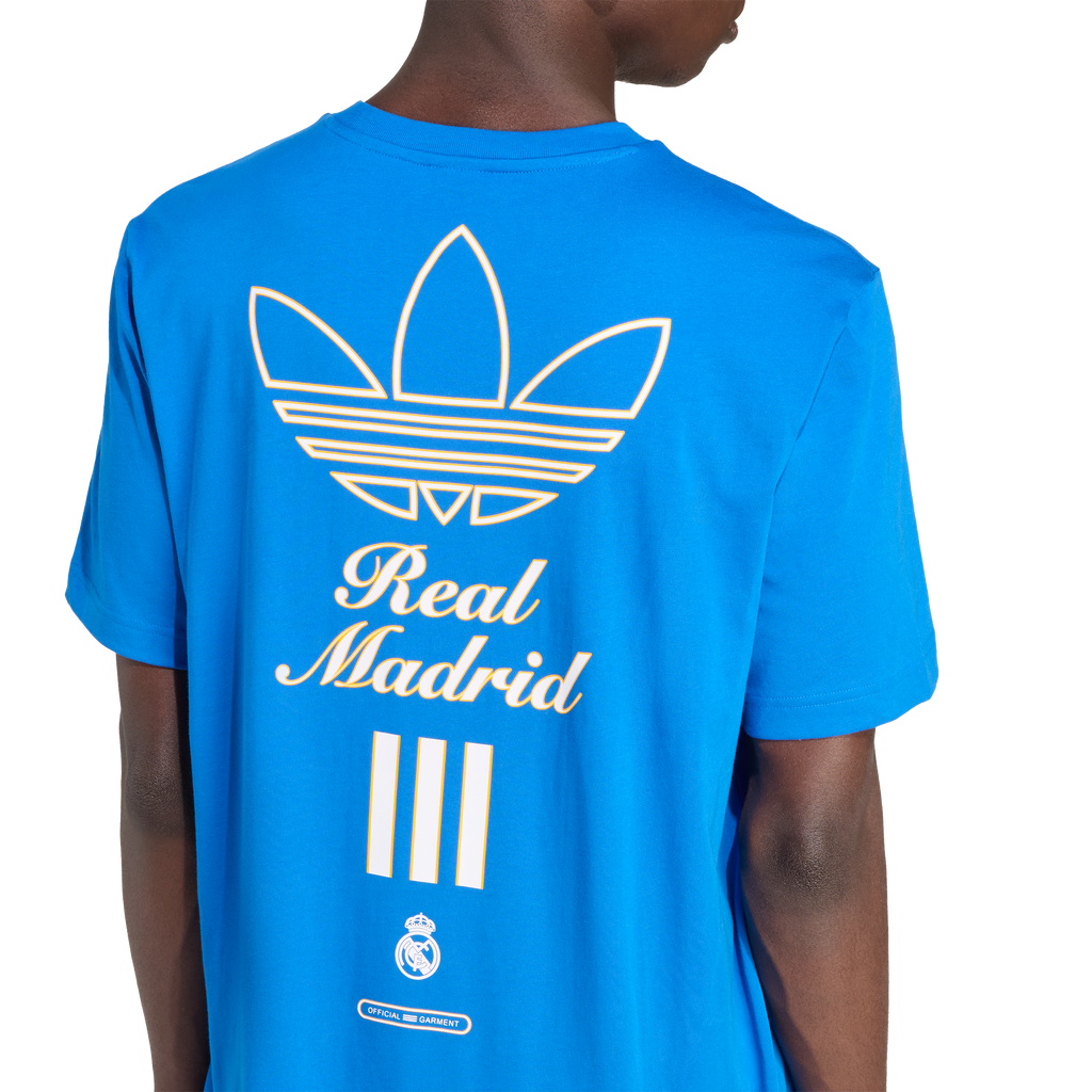 A casual top for dedicated fans, this Real Madrid tee is perfect for showing your support anywhere your day takes you. Its soft single jersey build keeps you comfortable. That bold graphic on the back takes inspiration from iconic adidas football woven labels of the '80s and '90s. Pair it with jeans, joggers or your favourite shorts for a stylish look that represents your club pride.
