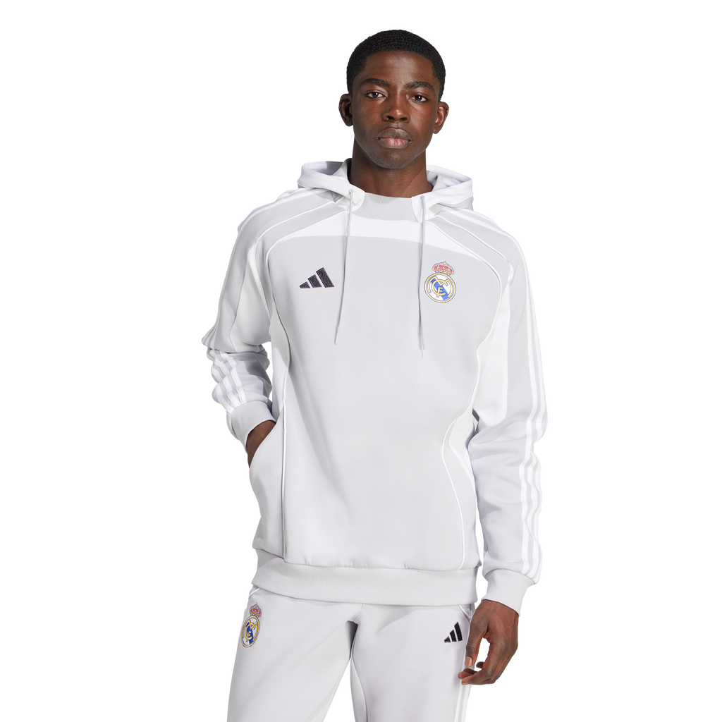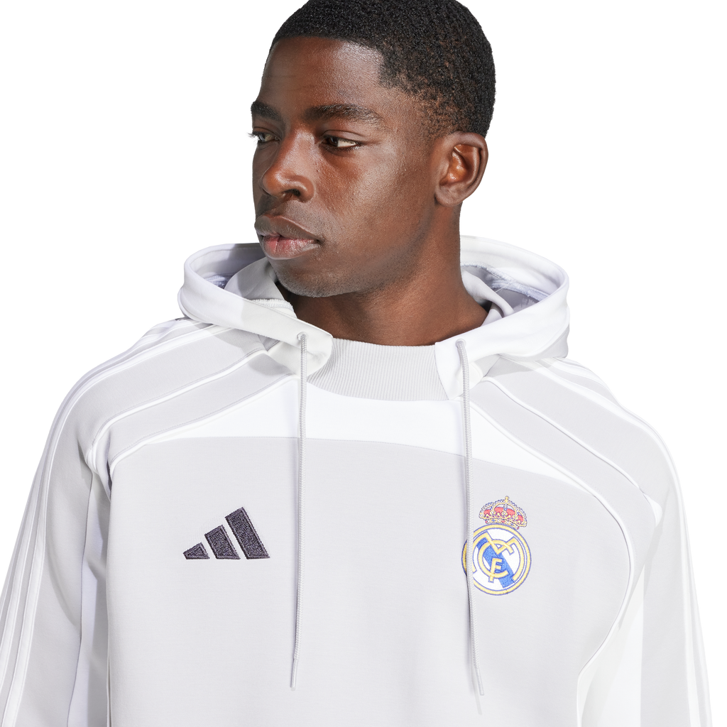 Display your Real Madrid pride in throwback football style. Its soft doubleknit fabric makes this comfortable adidas hoodie perfect for casual weekends and busy match days. The club's world-famous crest stands out from a design inspired by a prominent 2010s look.