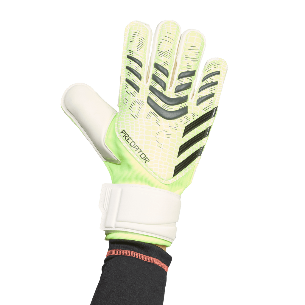 Stop every shot in these adidas Predator Match goalkeeper gloves. Including cushioned Soft Grip Pro latex in the palm and a flexible backhand, they'll ensure you're ready for anything. A half-wrap wrist strap helps you find a stable fit for comfortable play.