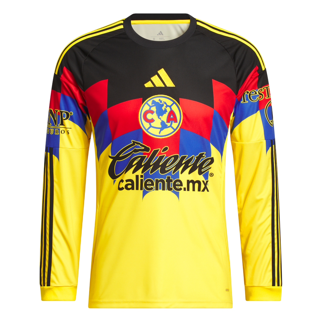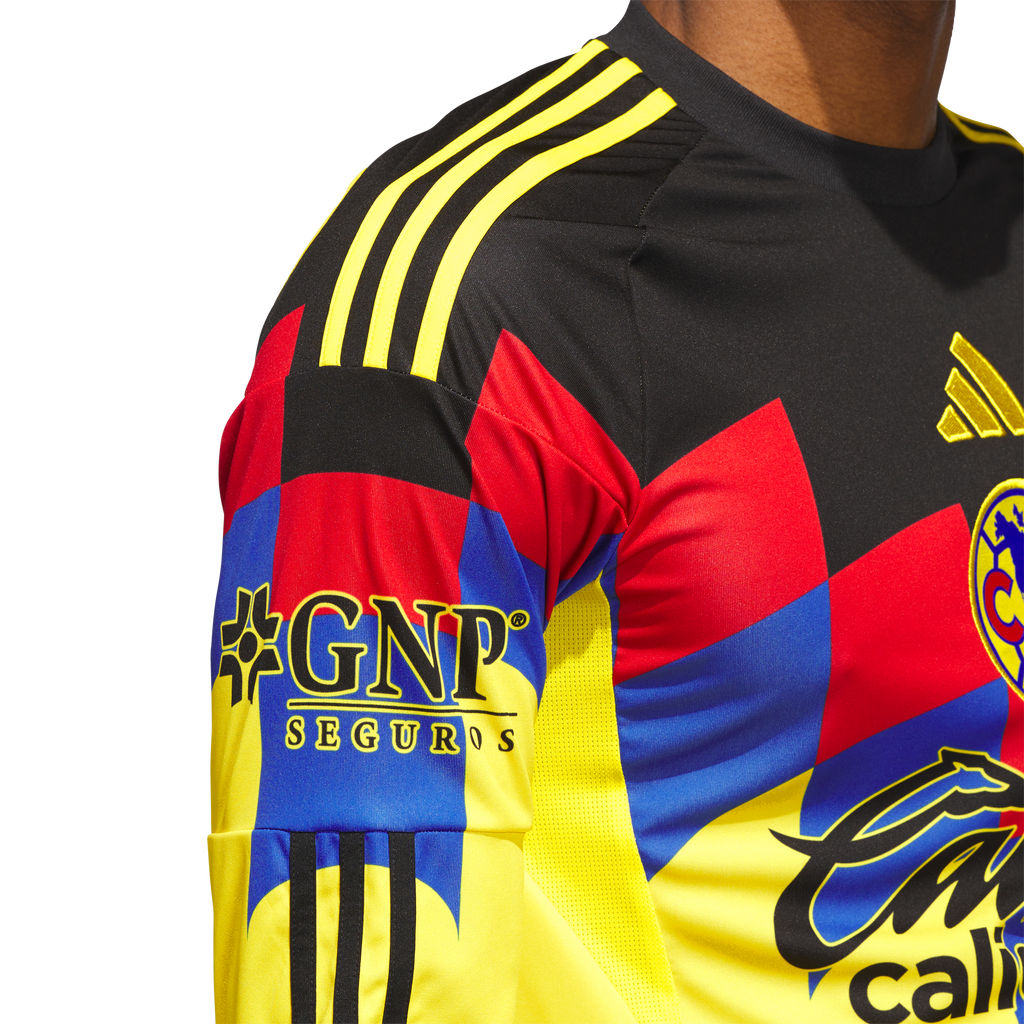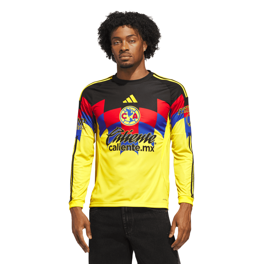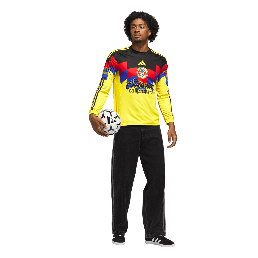 A legend takes flight. The Club América 25/26 Long Sleeve Goalkeeper Jersey celebrates Club América teaming back up with adidas. A modern take on one of the duo's most memorable collaborations, it features eagle feather-inspired graphics on the chest and a prominent, centered badge. Moisture-managing Aeroready and soft fabric ensure soccer fans stay comfortable while they back their team.