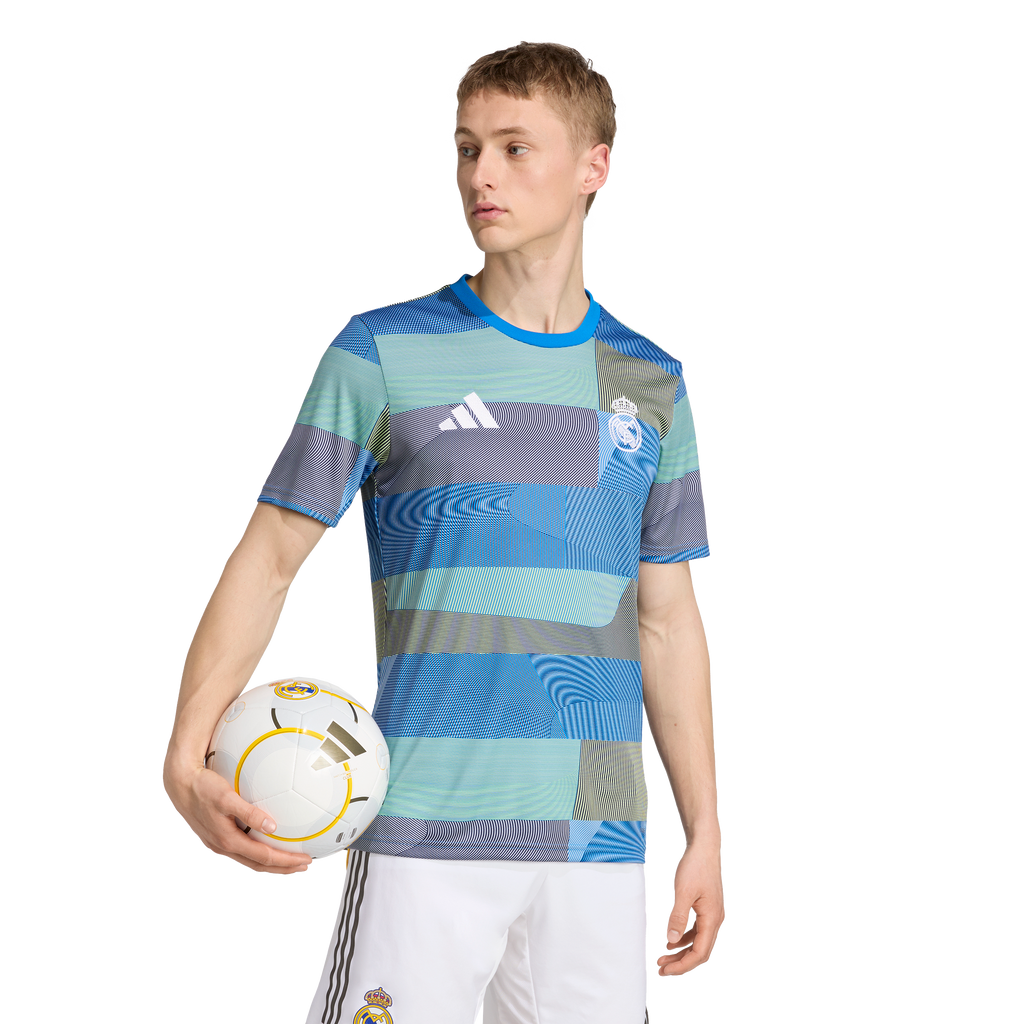Real Madrid players and fans are sure to feel at home in this adidas football jersey. Showing off a dynamic design inspired by the club's new-look Bernabéu stadium, it will keep you standing out whether you're polishing your skills or backing your heroes. Moisture-managing AEROREADY keeps you dry through all the action and an embroidered club crest adds the perfect finish.