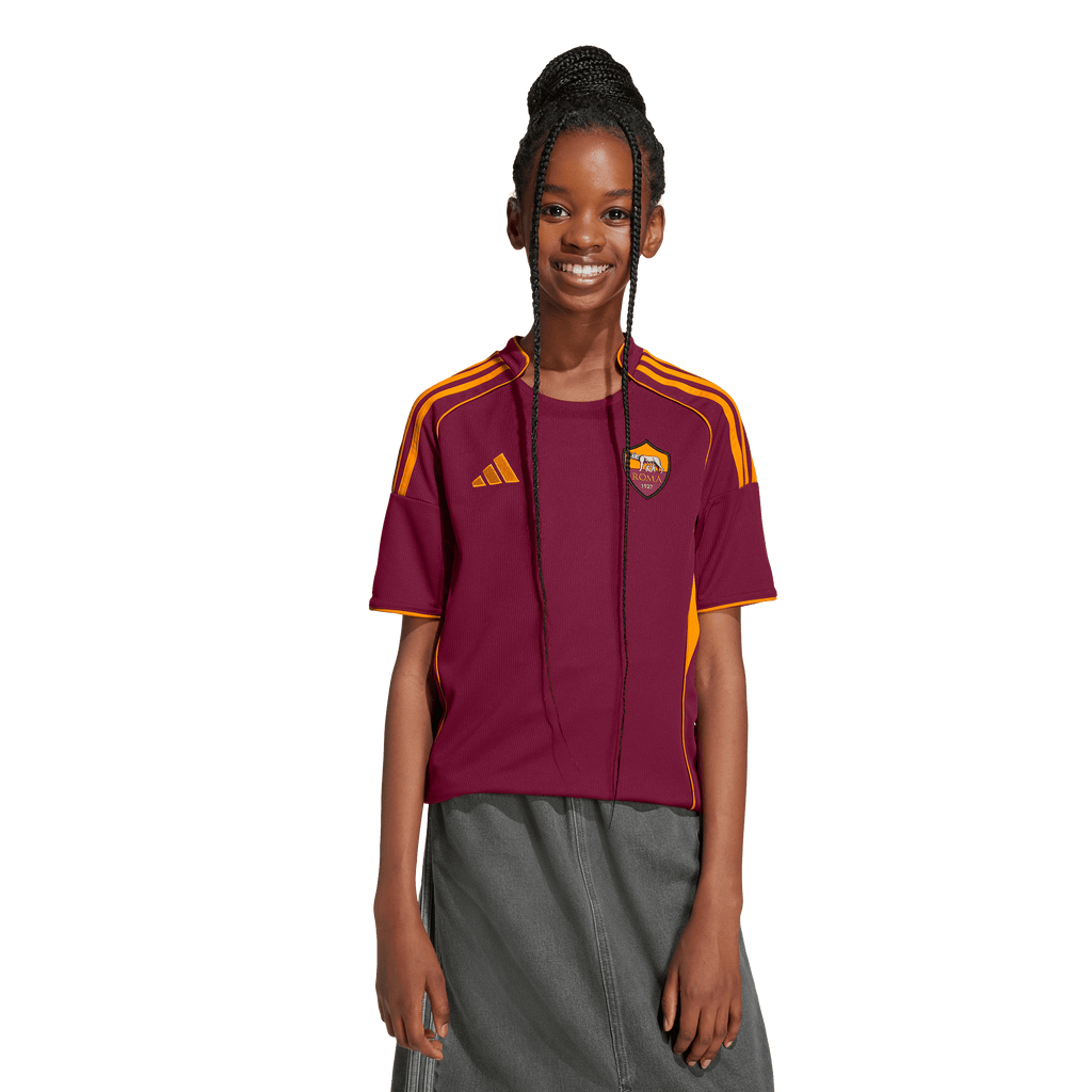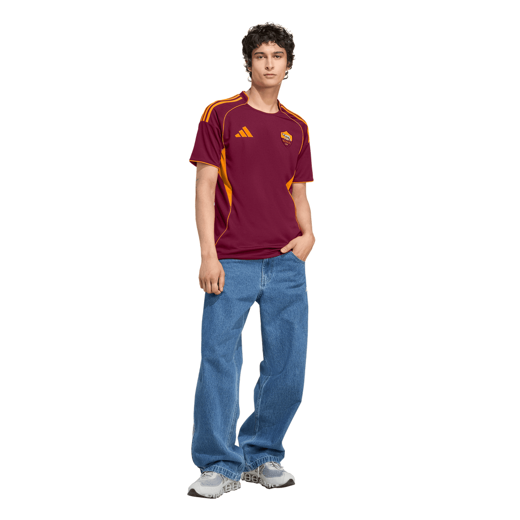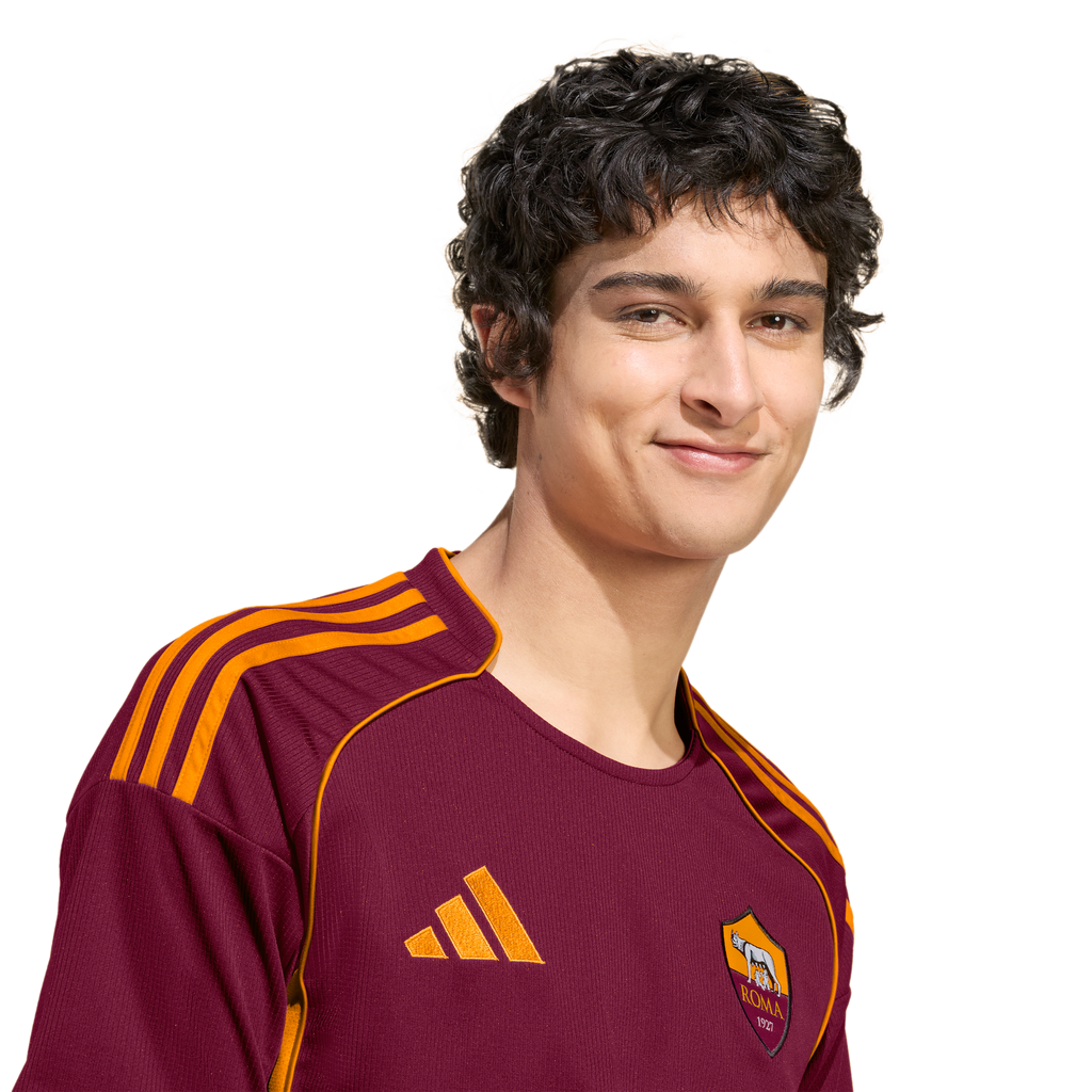 A glimpse into an alternative history. This AS Roma home jersey winds back the soccer clock with a classic adidas look from the 2000s. Built for supporters, it employs moisture-managing AEROREADY and soft fabric to keep them comfortable whenever they represent. On the chest, a sewn-on club badge adds the perfect finishing touch.