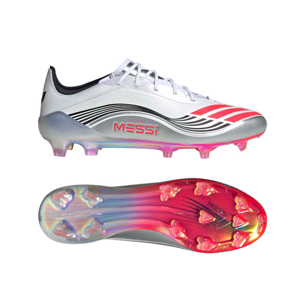 Lightweight F50 cleats for showing non-stop Messi skills on firm ground.