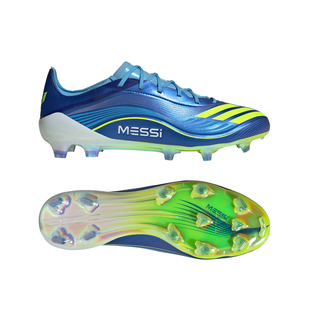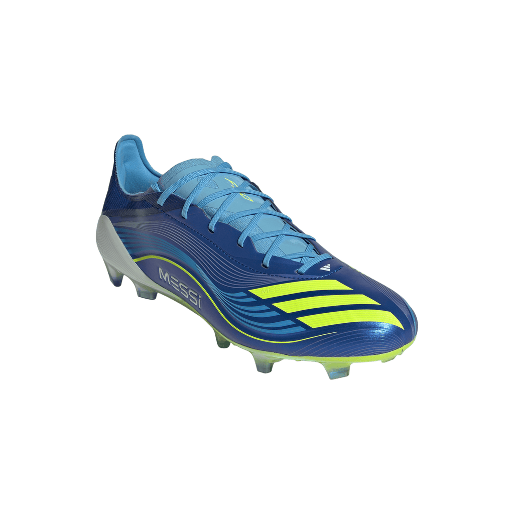 Engineered for speed, tuned for Lionel Messi. These adidas Elite football boots are part of a collection created to match the GOAT's on-pitch requirements. Delivering a leather-like feel, their flexible HybridTouch upper comes with a knit "burrito" tongue for a wider opening and comfortable fit. The Sprintframe 360 outsole is built for quick feet on dry grass surfaces.