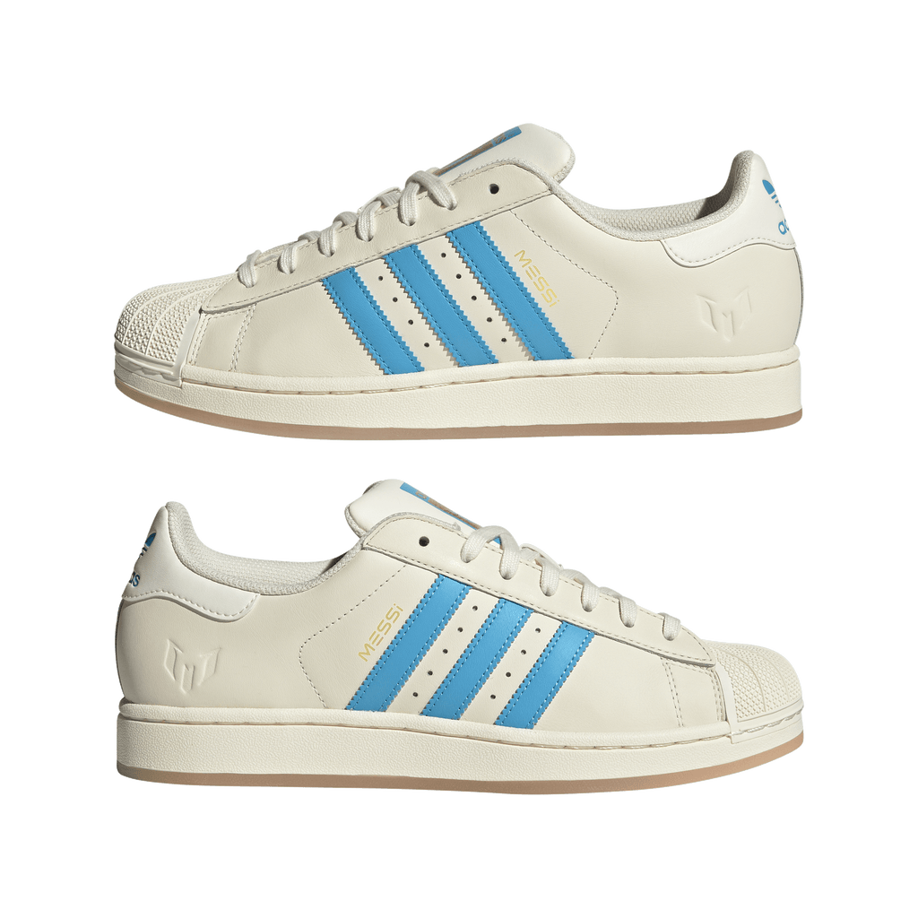 Stand with Lionel Messi in timeless adidas style. One icon celebrating another, these Superstar shoes display the Argentine playmaker's name and logo over his national team's colours. With its comfortable, full leather upper and unmistakable shell toe, this 3-Stripes legend is the perfect platform for you to show your football pride.