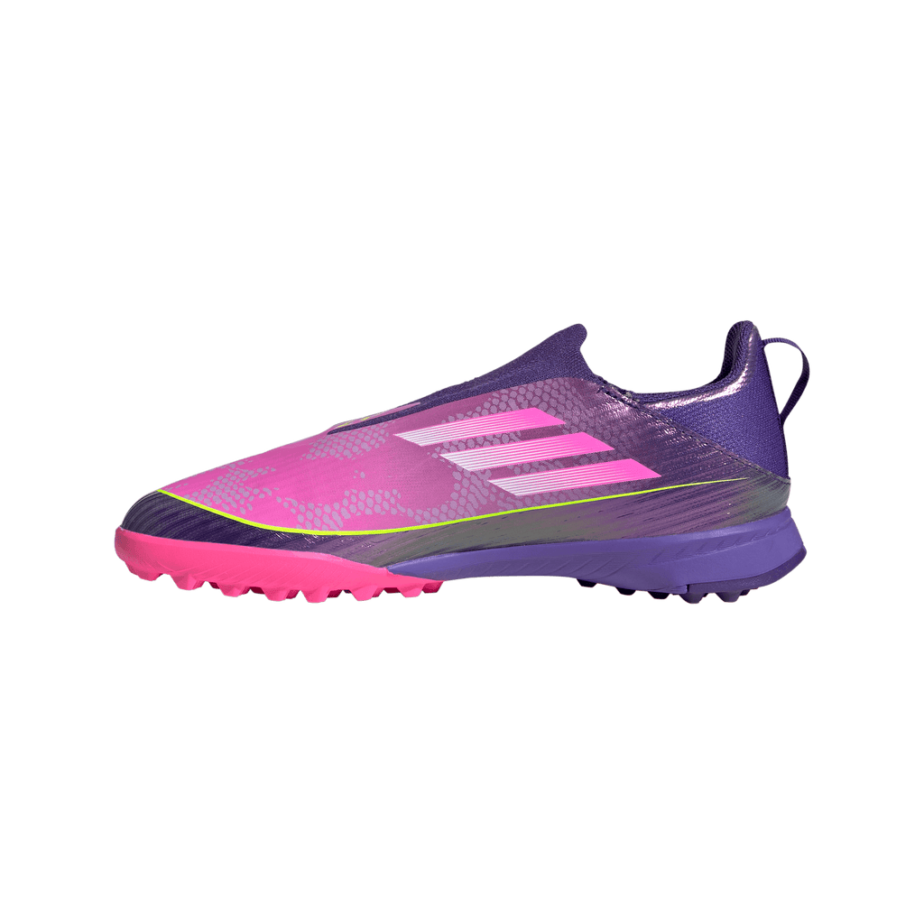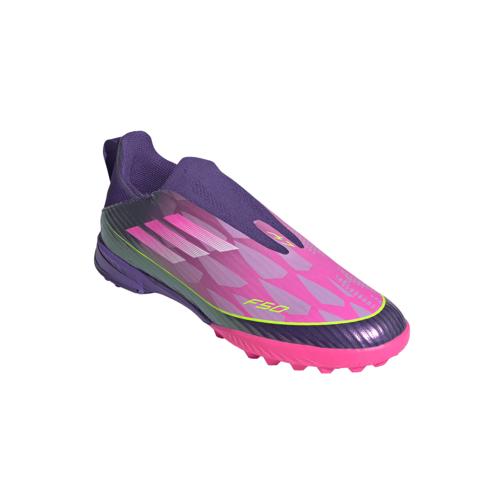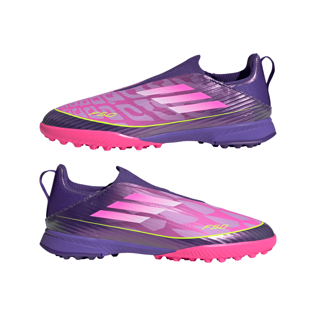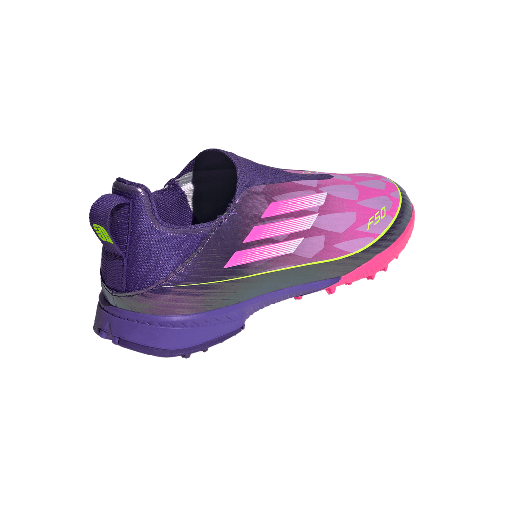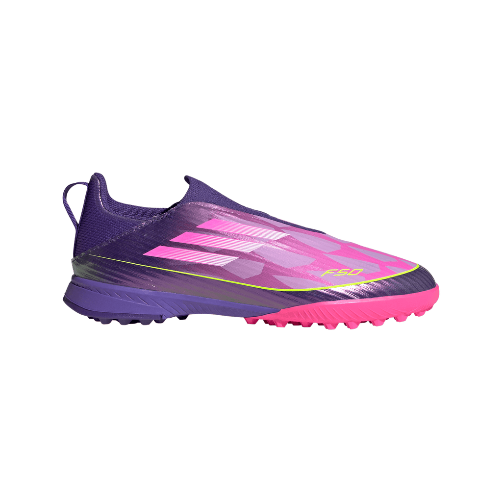 When it comes to football, speed is everything. The F50 League Laceless Turf Football Boots are designed to help young players unlock their full potential on the pitch. The Fiberskin Upper features an engineered material package offering support and soft feel with strategically placed 3D lines. The Sprintgrid 2D mudguard print visually emulates the design element from pinnacle pricepoints. The laceless collar features a comfortable knit collar with TPU backing for enhanced foot lockdown at higher speeds. The Sprintplate 360 offers TPU based tooling with F50 design DNA and outsole coring from pinnacle pricepoints. With double branding, including printed 3-Stripes on both sides of the midfoot and an F50 logo on the forefoot, these boots are as stylish as they are functional. adidas continues to push the boundaries, helping young athletes achieve their performance goals.
