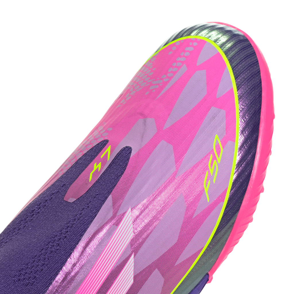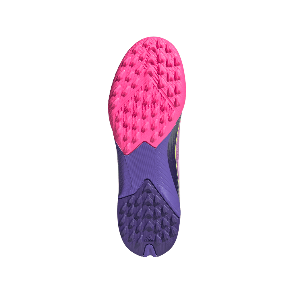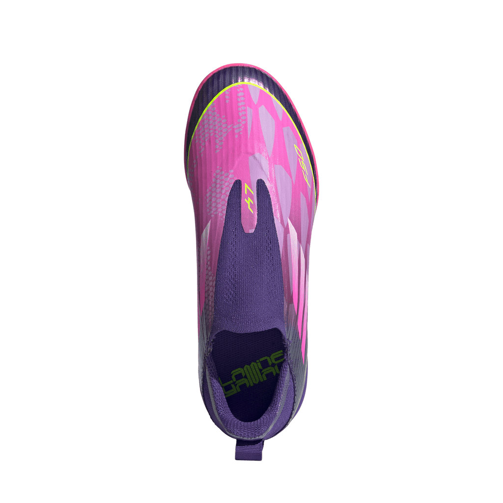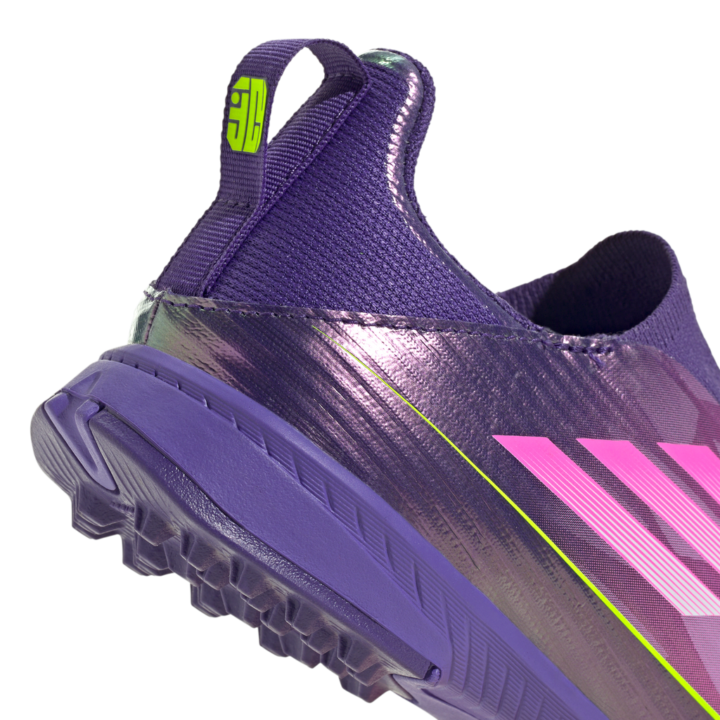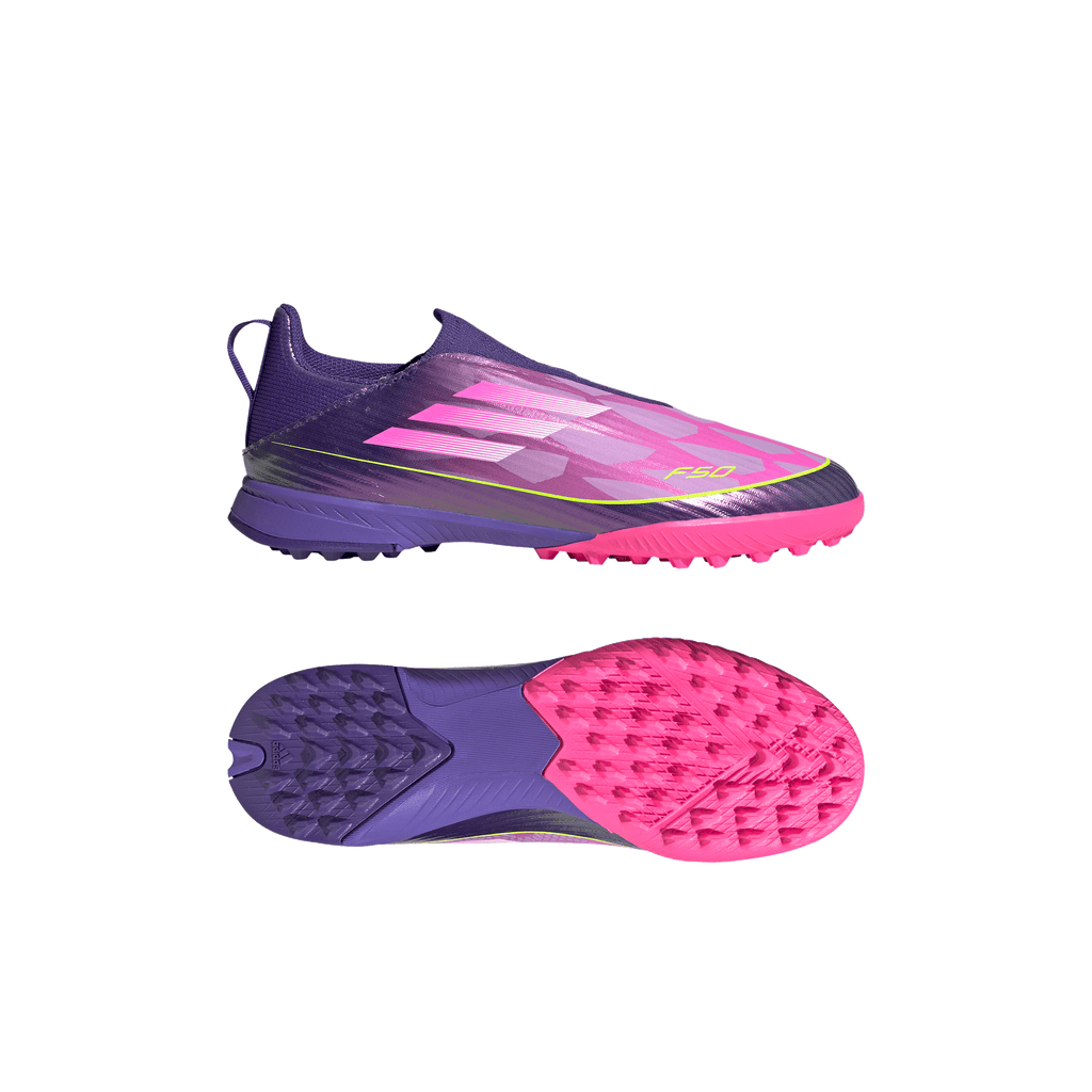 When it comes to football, speed is everything. The F50 League Laceless Turf Football Boots are designed to help young players unlock their full potential on the pitch. The Fiberskin Upper features an engineered material package offering support and soft feel with strategically placed 3D lines. The Sprintgrid 2D mudguard print visually emulates the design element from pinnacle pricepoints. The laceless collar features a comfortable knit collar with TPU backing for enhanced foot lockdown at higher speeds. The Sprintplate 360 offers TPU based tooling with F50 design DNA and outsole coring from pinnacle pricepoints. With double branding, including printed 3-Stripes on both sides of the midfoot and an F50 logo on the forefoot, these boots are as stylish as they are functional. adidas continues to push the boundaries, helping young athletes achieve their performance goals.