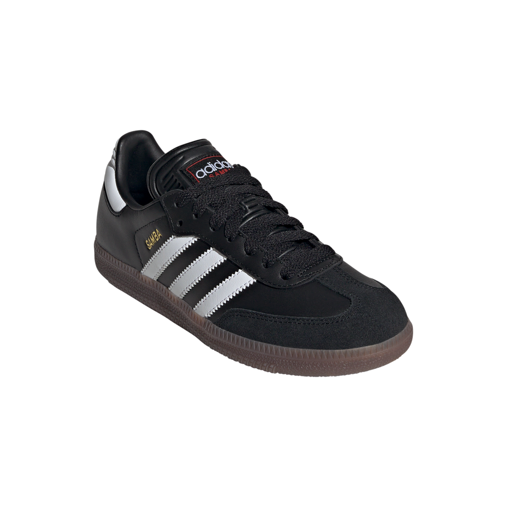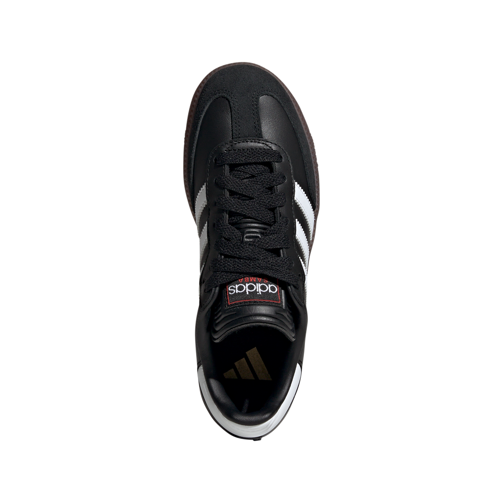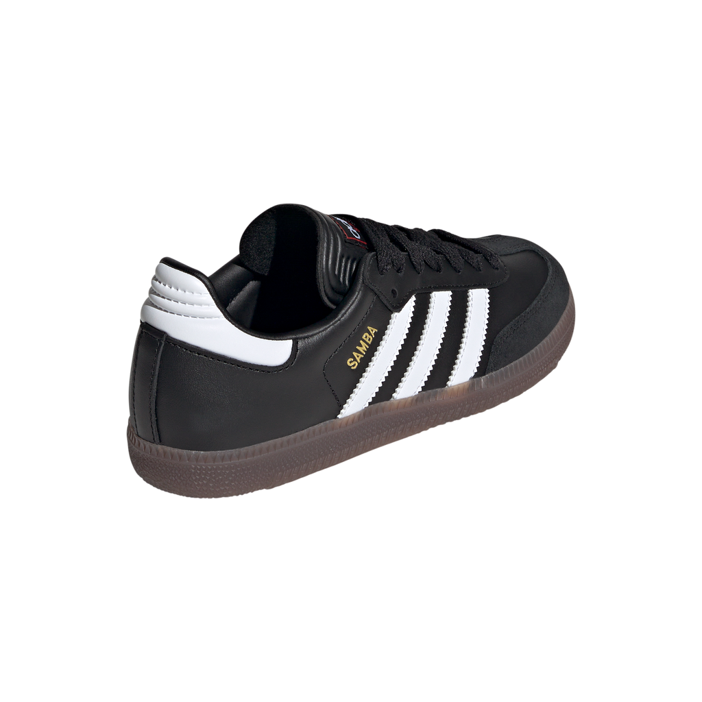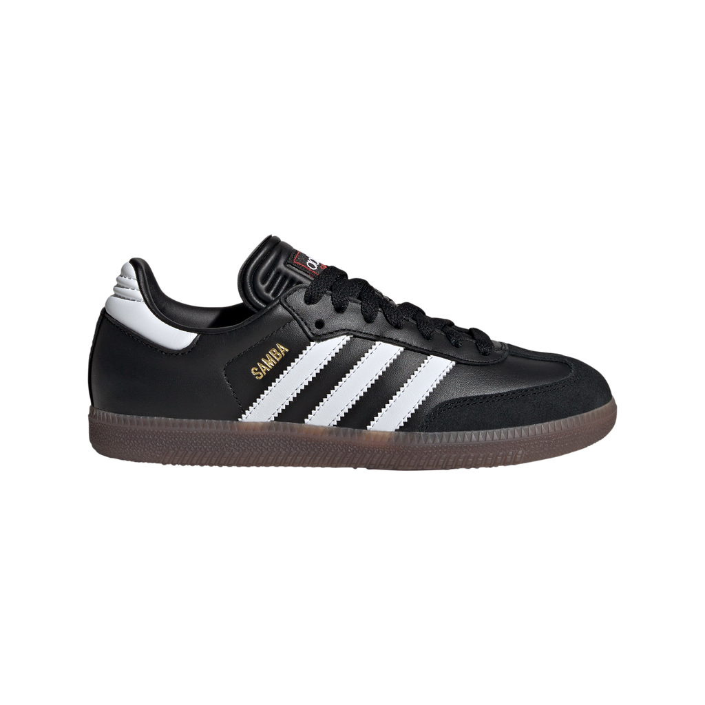Returning to their football roots. Long before they became a streetwear staple, adidas Samba boots served as a durable training boot for icy and hard outdoor surfaces. With a hardwearing leather upper and a grippy rubber outsole, these juniors' boots are designed for running rings around your opponents on indoor courts.