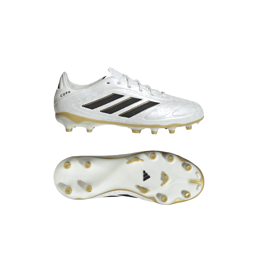 Every deft touch. Every exquisite pass. Piece together your perfect game with Copa Pure 3 boots for a flawless connection with the ball every time. These juniors' adidas League boots have a synthetic Fusionfeel upper that looks and feels like leather. On its forefoot, a 3D print adds assurance to every touch. Underneath, a Comfortplate outsole makes for elegant football on multiple pitch types.