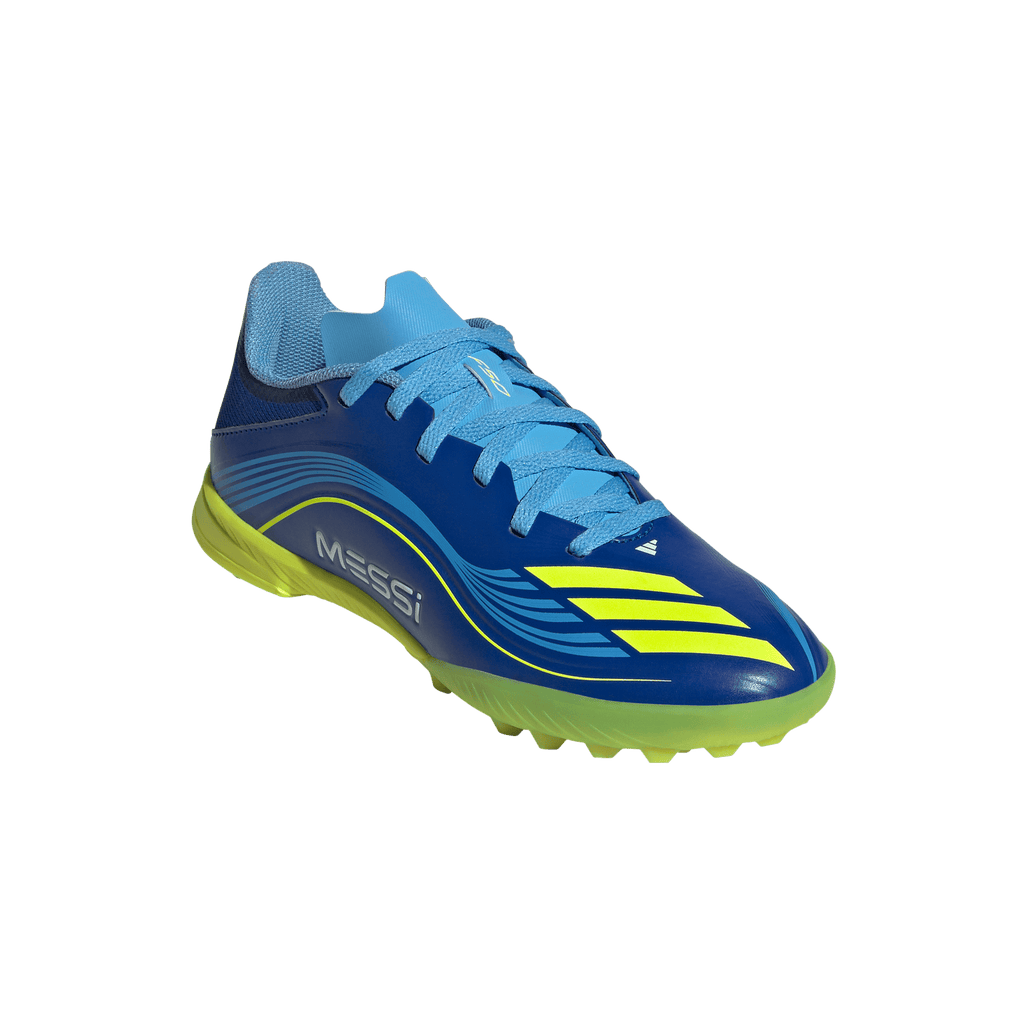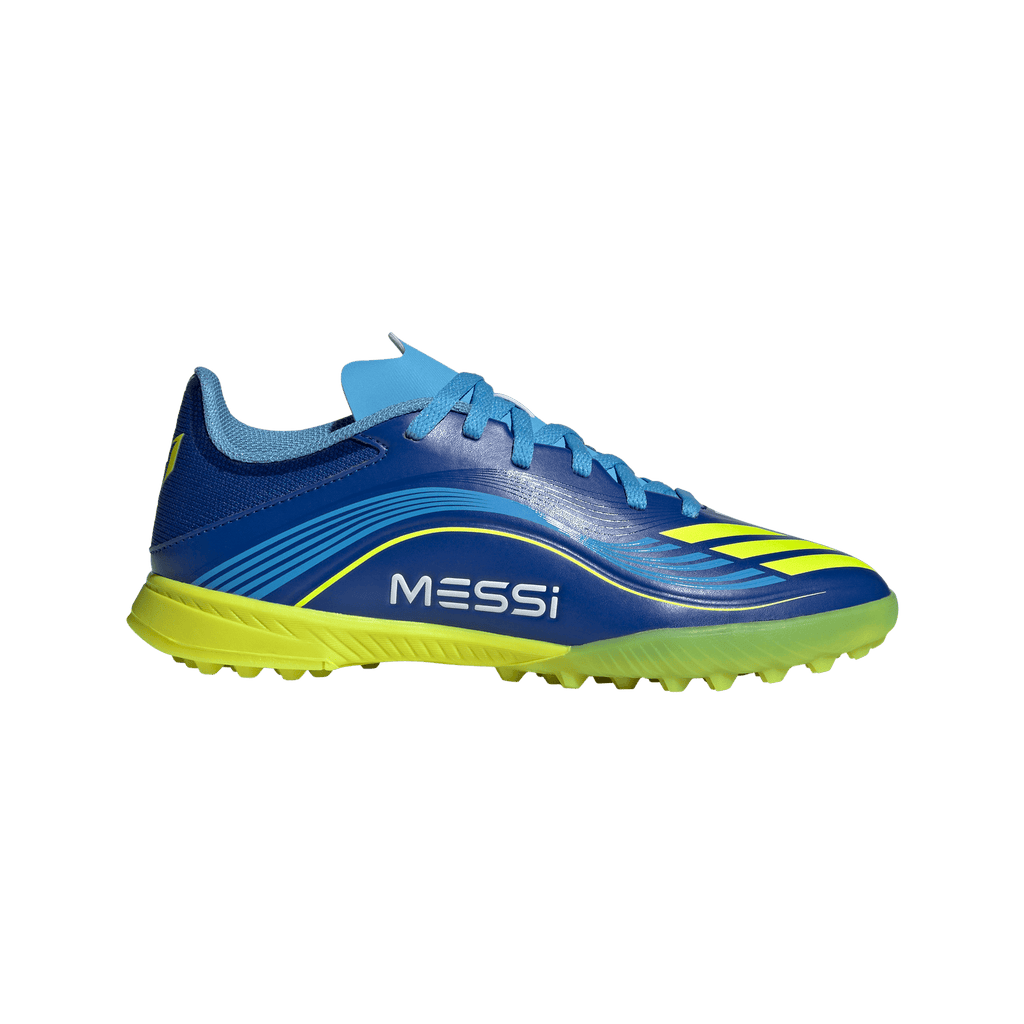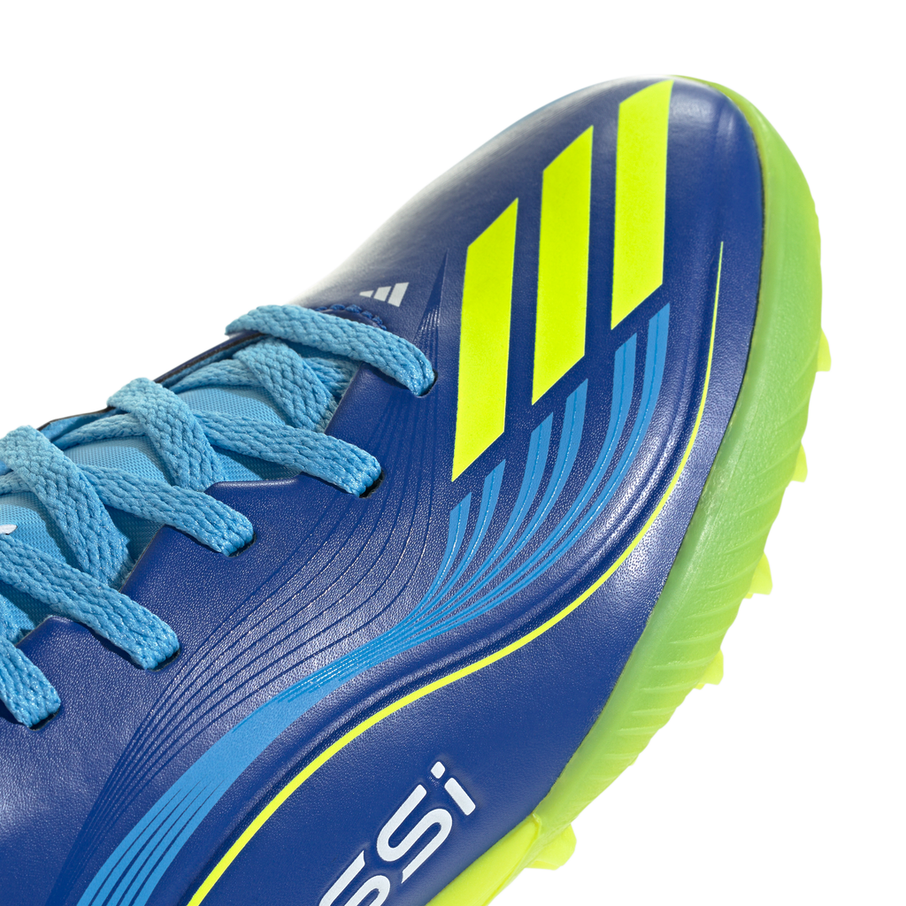 Engineered for speed, tuned for Lionel Messi. These juniors' adidas League football boots are part of a collection created to match the GOAT's on-pitch requirements. Delivering a leather-like feel, their flexible HybridTouch upper comes with a comfortable synthetic tongue. The lug rubber outsole is built for quick feet on artificial turf courts.