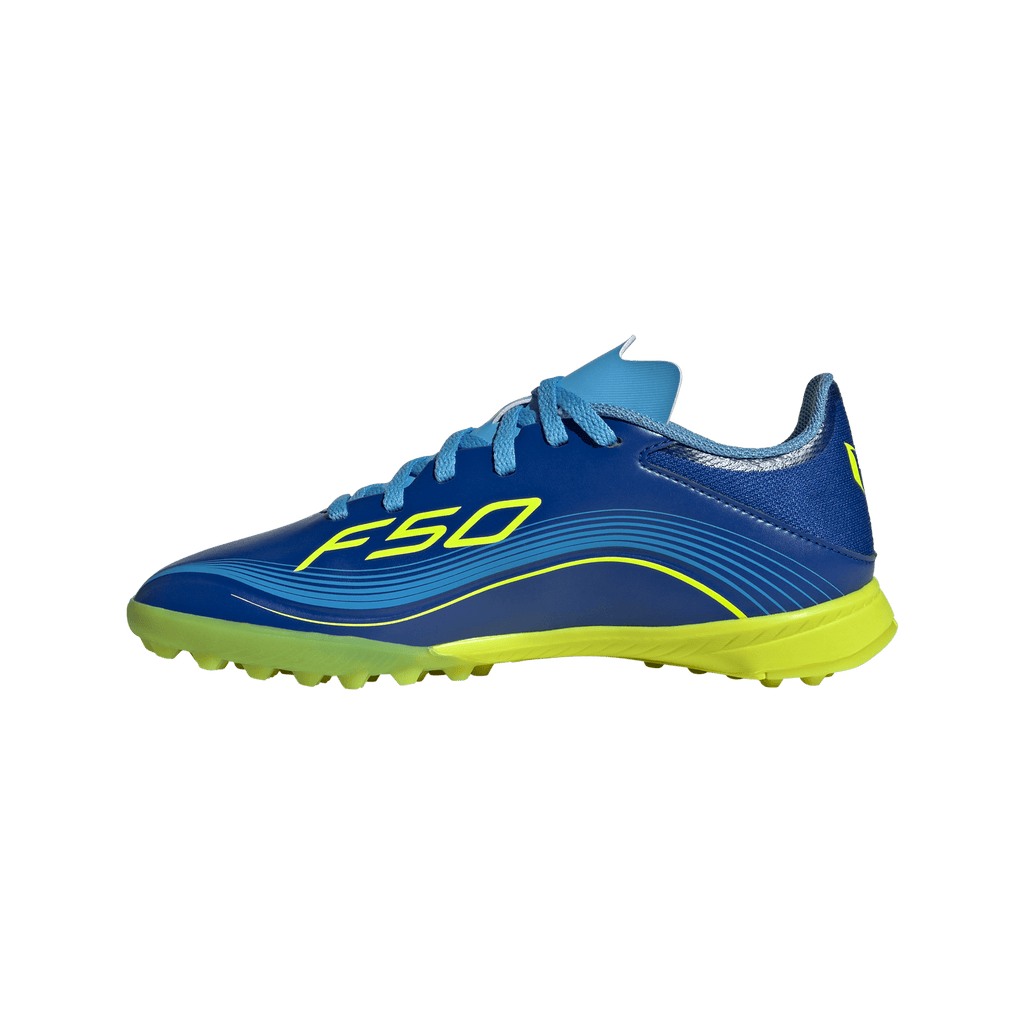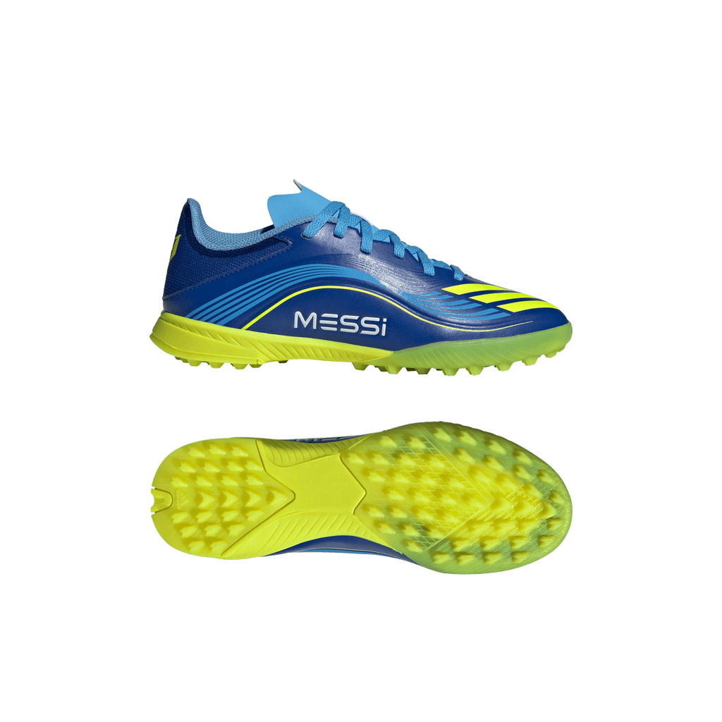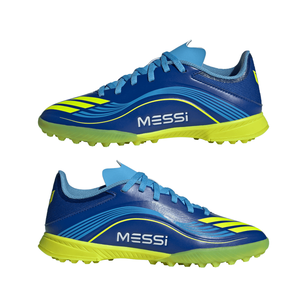Engineered for speed, tuned for Lionel Messi. These juniors' adidas League football boots are part of a collection created to match the GOAT's on-pitch requirements. Delivering a leather-like feel, their flexible HybridTouch upper comes with a comfortable synthetic tongue. The lug rubber outsole is built for quick feet on artificial turf courts.