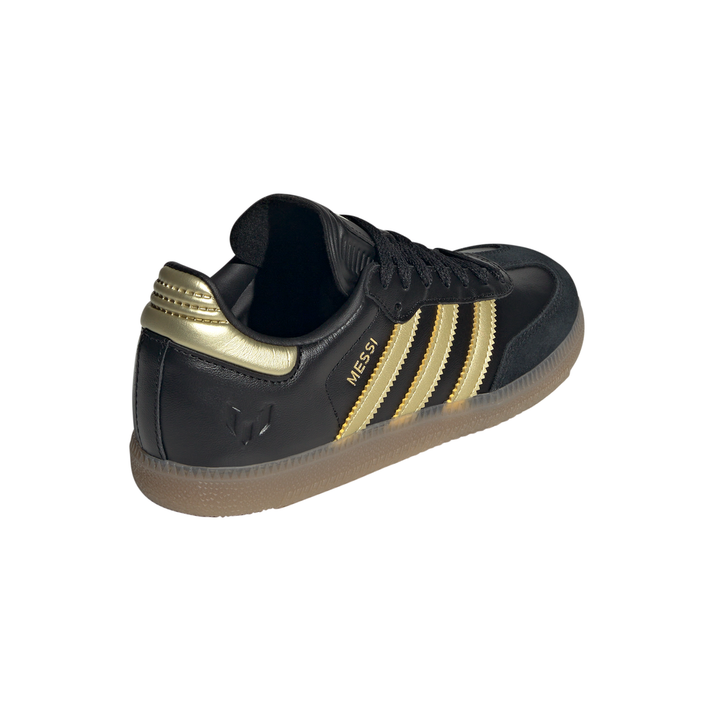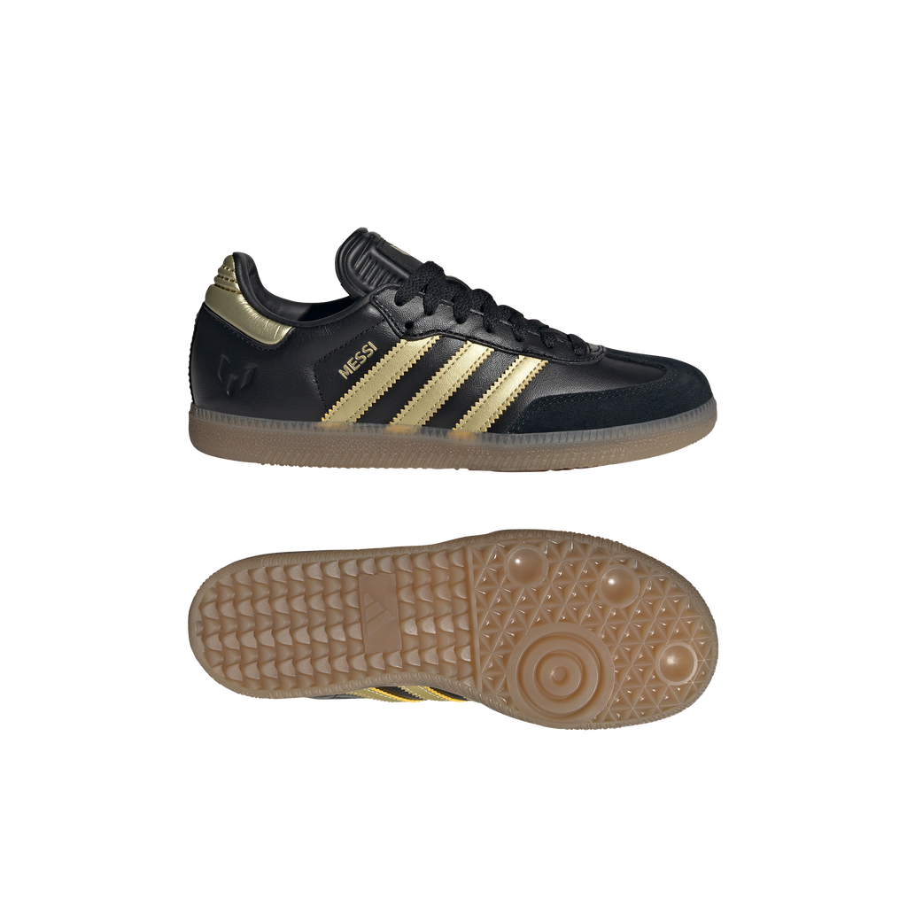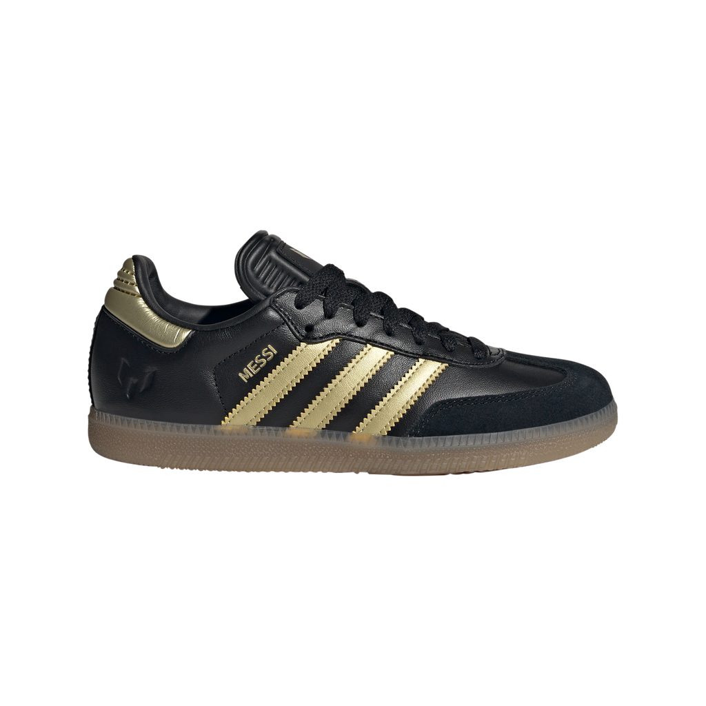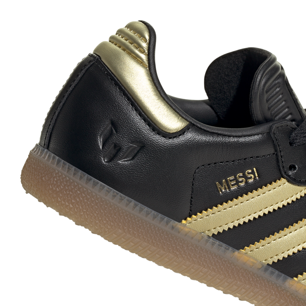 When the biggest games are on the line, you can count on Lionel Messi to deliver. Represent the Argentine's on-pitch passion from beyond the touchline in these comfortable adidas Samba football shoes for juniors. Showing off player details, this 3-Stripes classic includes a signature leather upper and grippy rubber outsole.