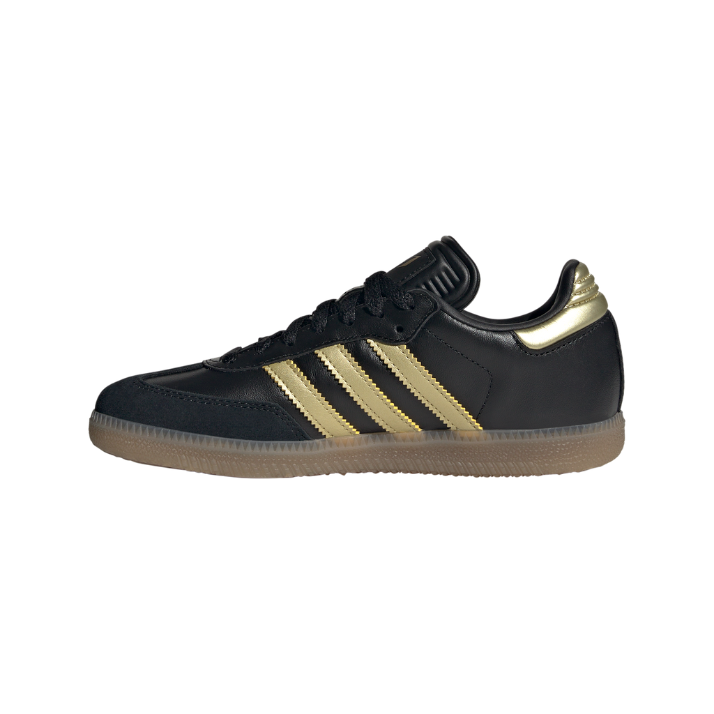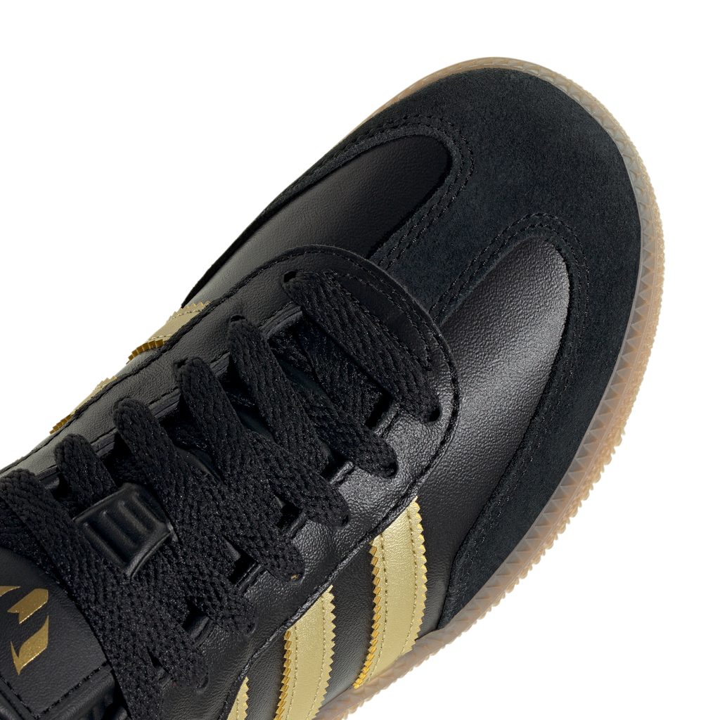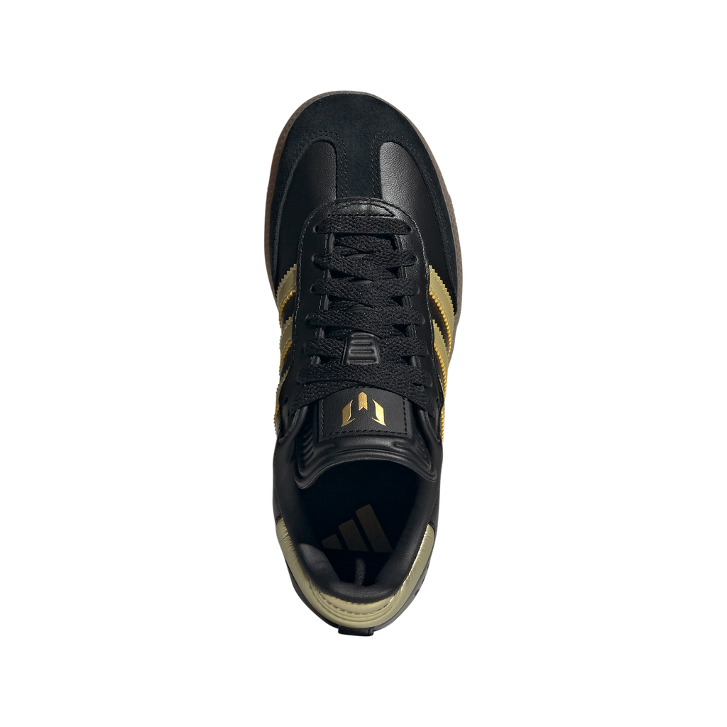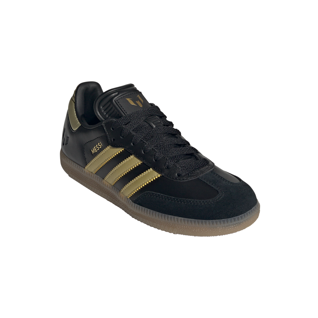When the biggest games are on the line, you can count on Lionel Messi to deliver. Represent the Argentine's on-pitch passion from beyond the touchline in these comfortable adidas Samba football shoes for juniors. Showing off player details, this 3-Stripes classic includes a signature leather upper and grippy rubber outsole.
