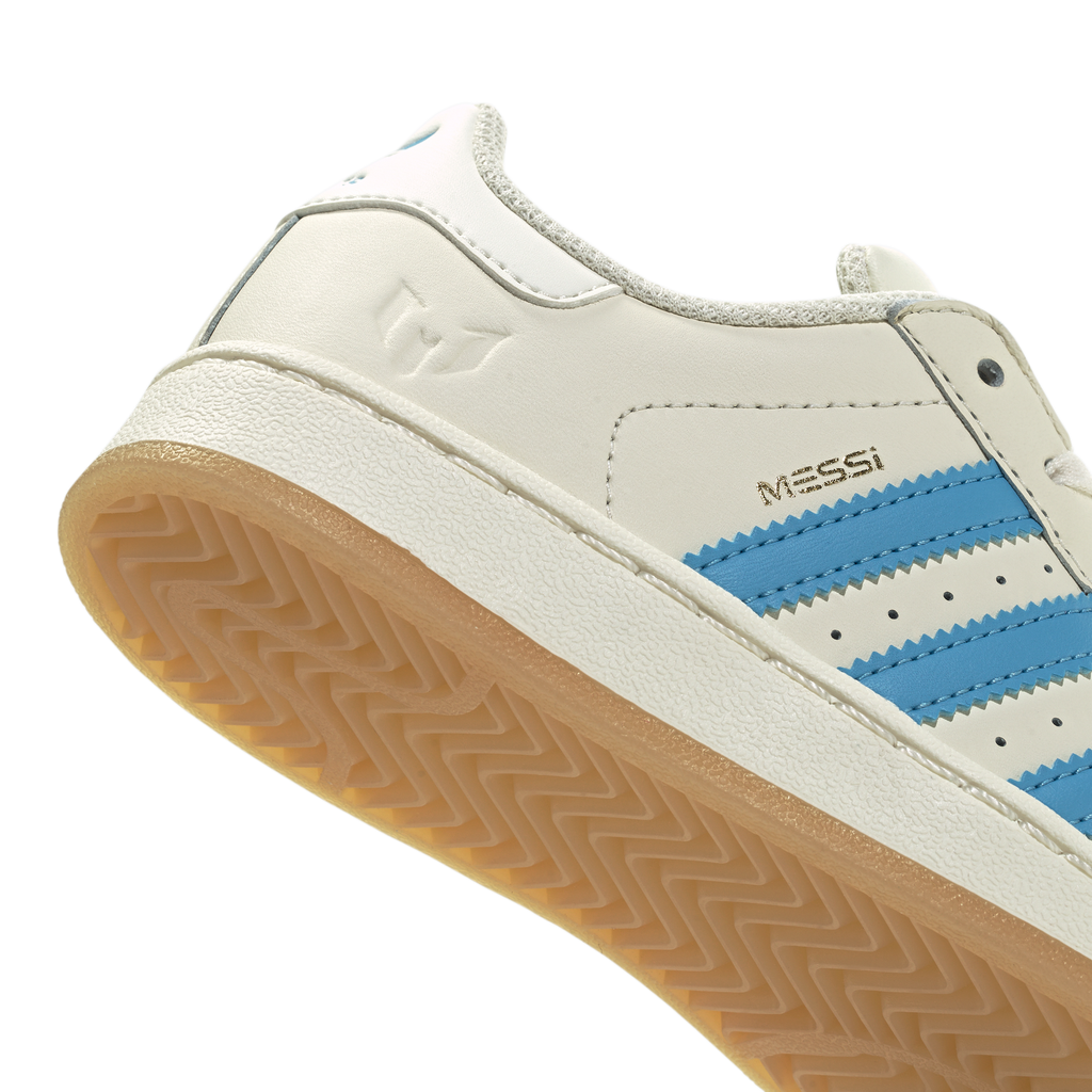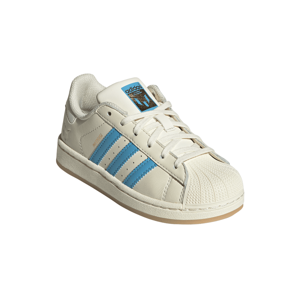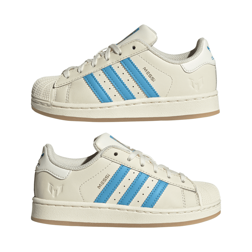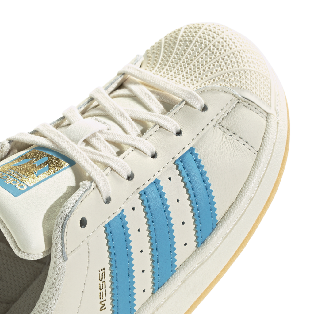 Young football fans can stand with Lionel Messi in timeless adidas style every time they pull on these kids' Superstar shoes. One icon celebrating another, they show off the Argentine playmaker's name and logo over his national team's colours. With its comfortable, full leather upper and unmistakable shell toe, this 3-Stripes legend is the perfect platform for them to show their pride.