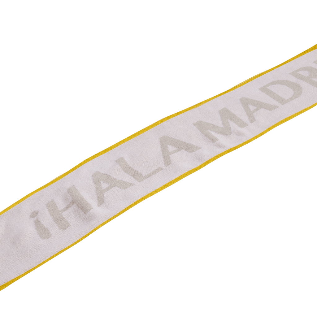 A soft scarf for backing Real Madrid in timeless football style.