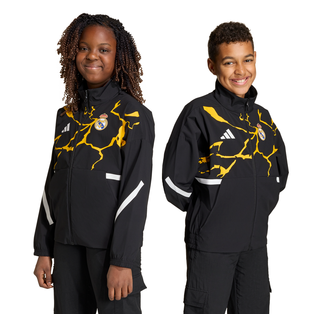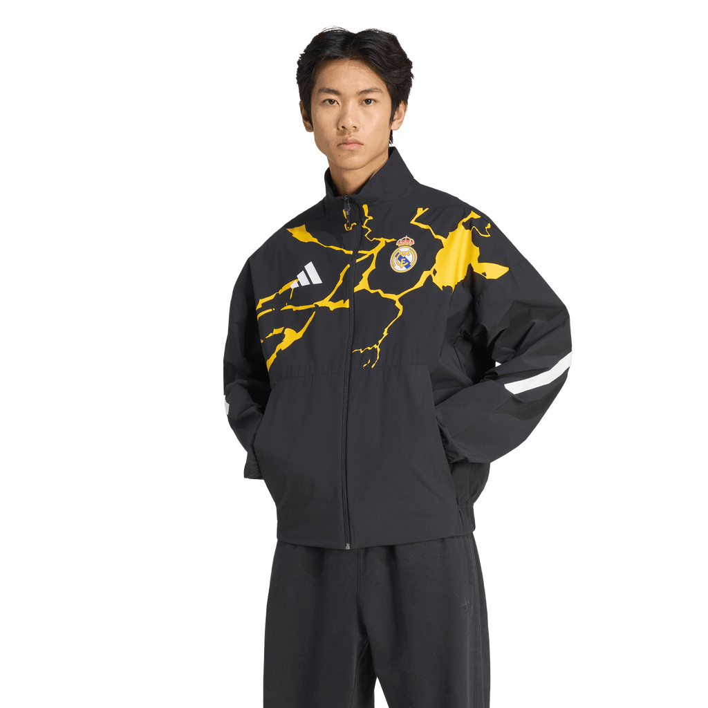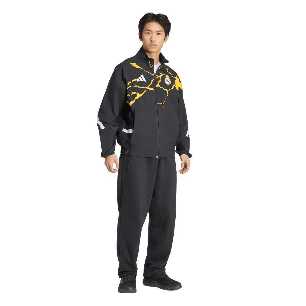 Inspired by the iconic lines on the field of play, the jacket features matte rubber prints that echo the precision and power of Real Madrid. Crafted in durable ripstop fabric with a loose-fit structure, it provides comfort and ease of movement.