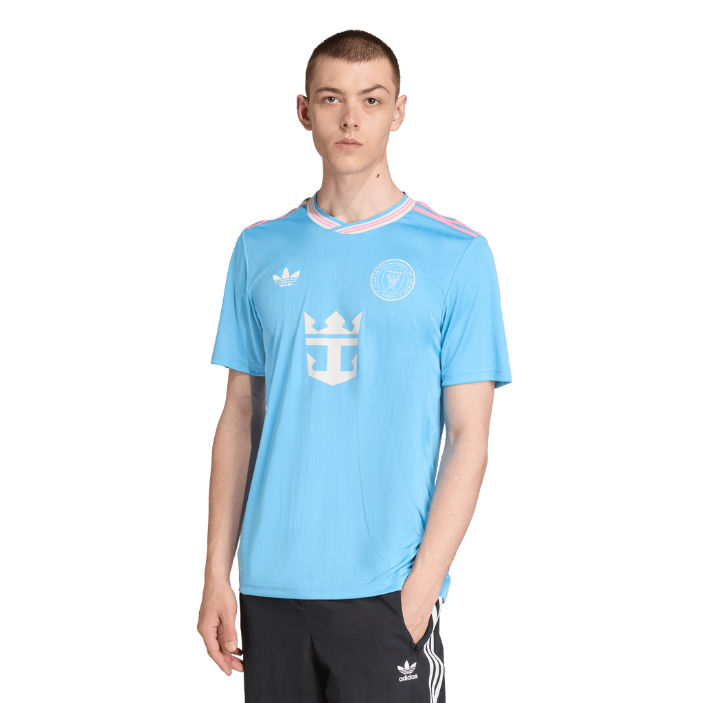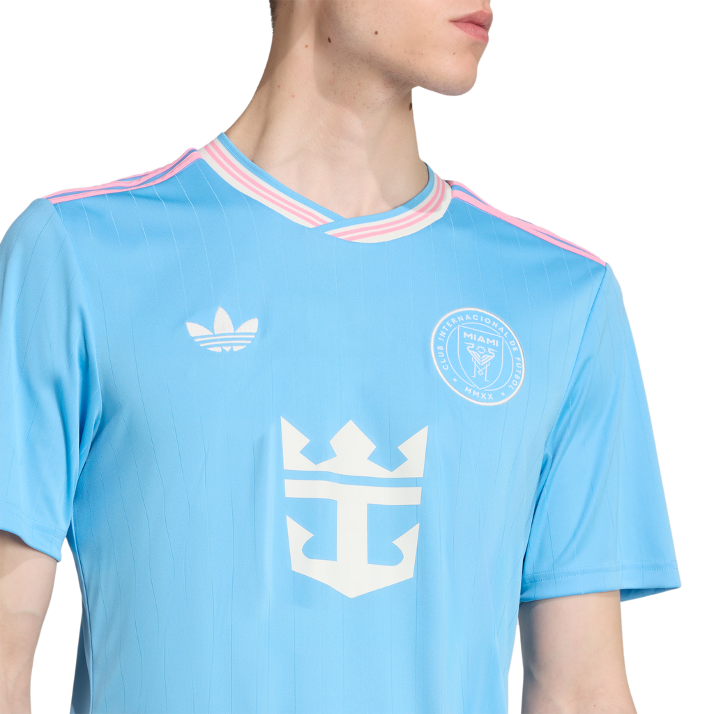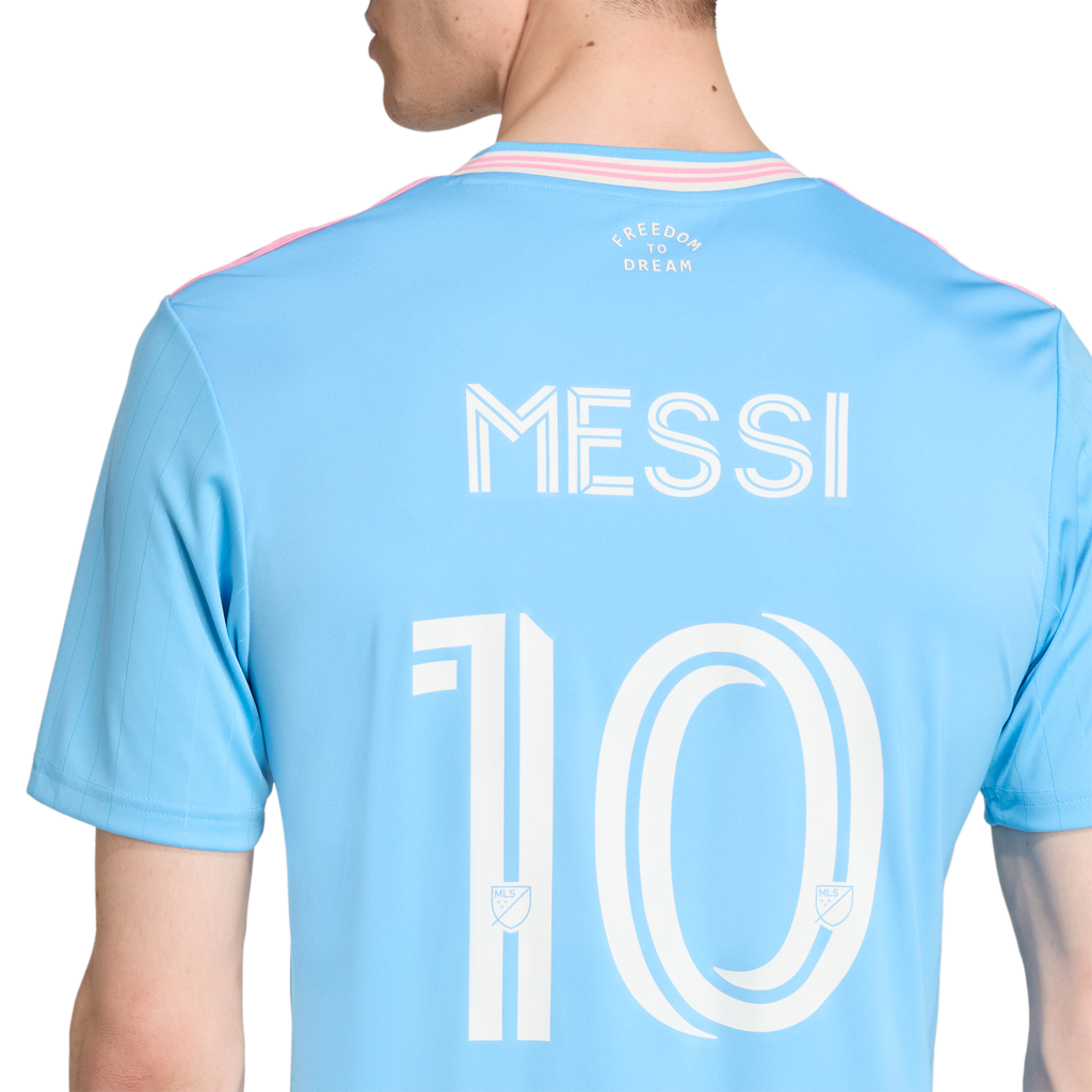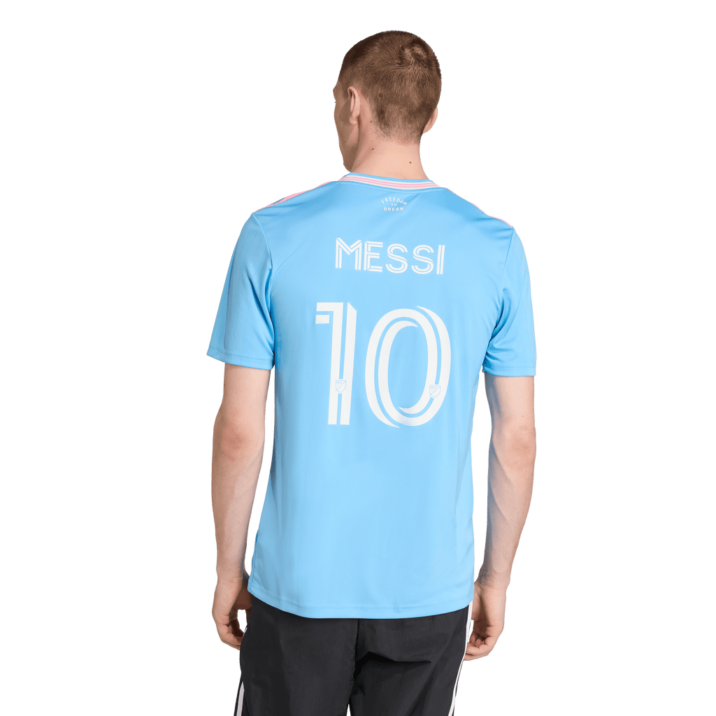 The vibrant spirit of Miami and the beauty of its world-famous coastline meet in this special Inter Miami CF jersey. Broken only by waves of subtle pinstripes and pops of pink, the ocean-blue colours of this third shirt bring a calming elegance. A club badge, adidas Trefoil and Lionel Messi's name and number add extra appeal. Moisture-managing AEROREADY ensures it feels pretty special too.