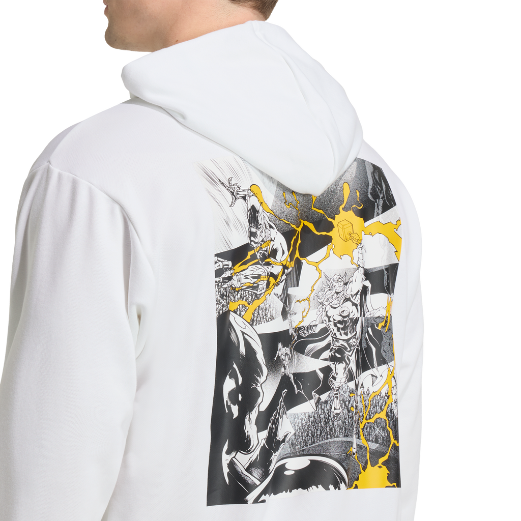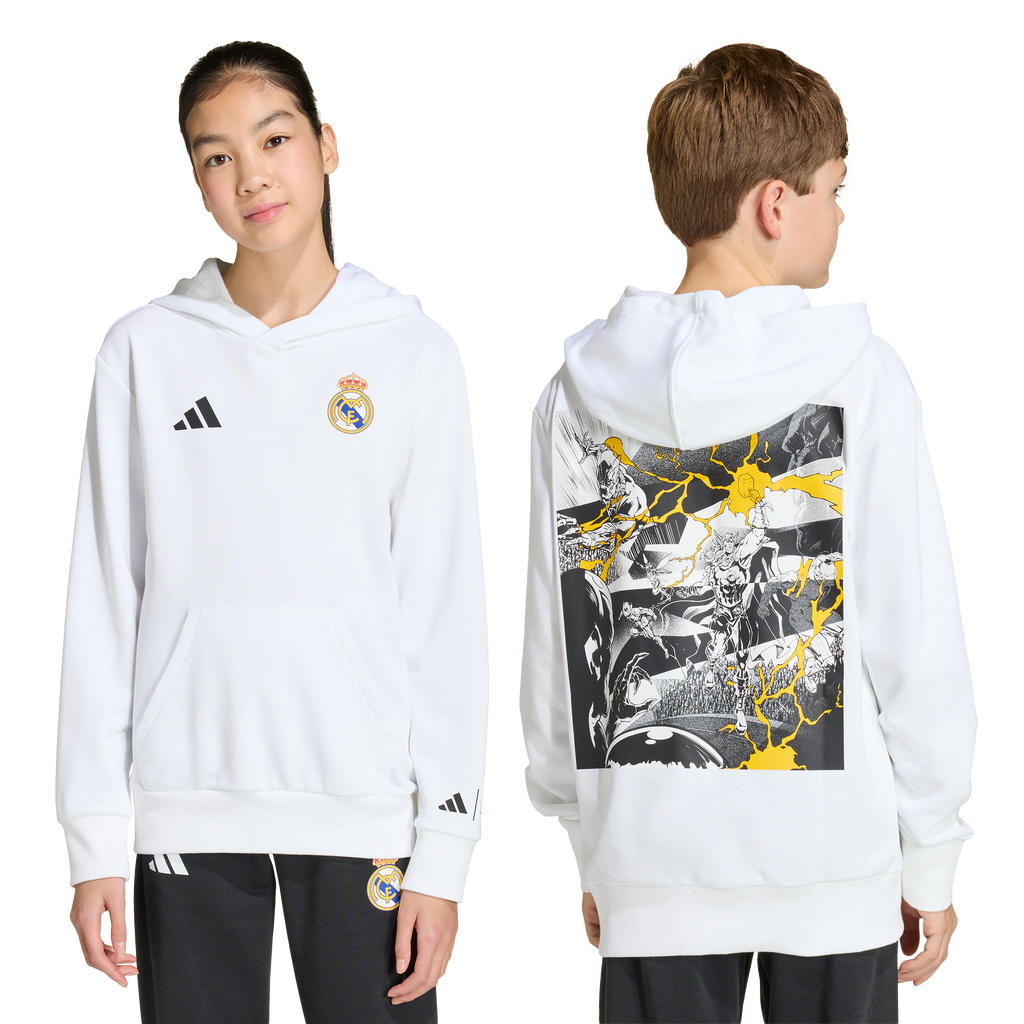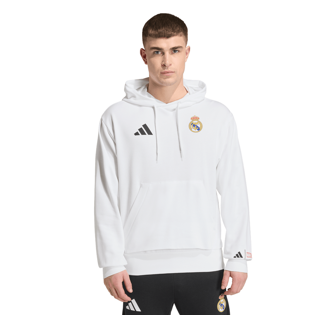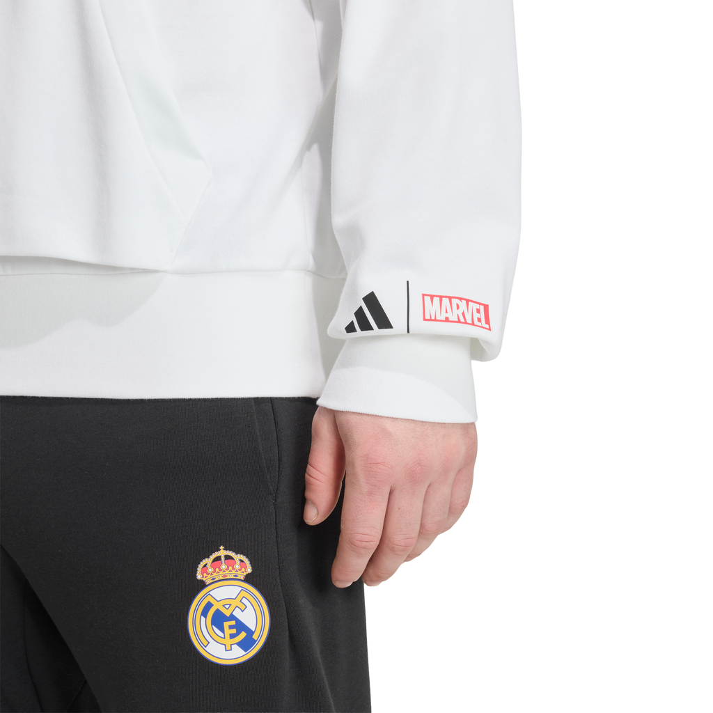 Embrace the world of soccer culture with the adidas Real Madrid Avengers Hoodie. Inspired by the thrilling collaboration between adidas Marvel and Real Madrid, this piece brings together iconic teams and superheroes in a unique design.