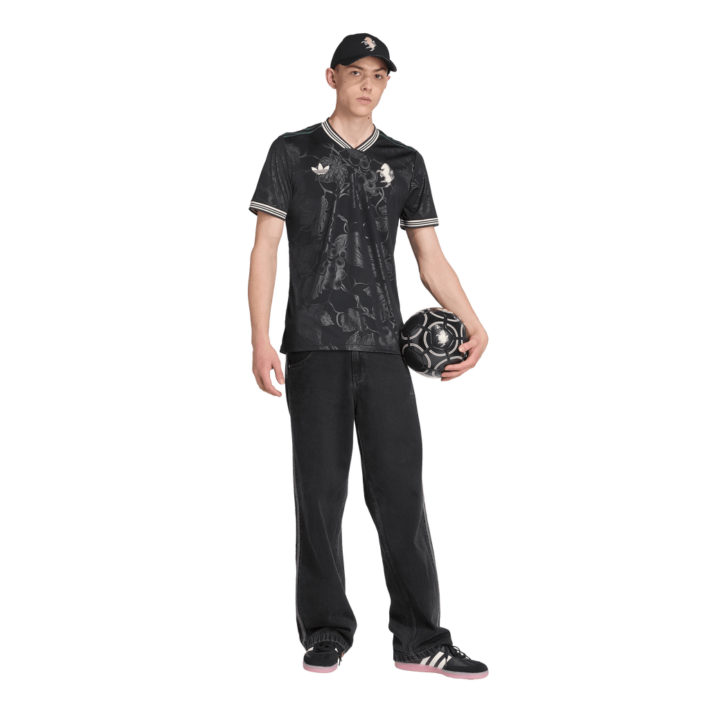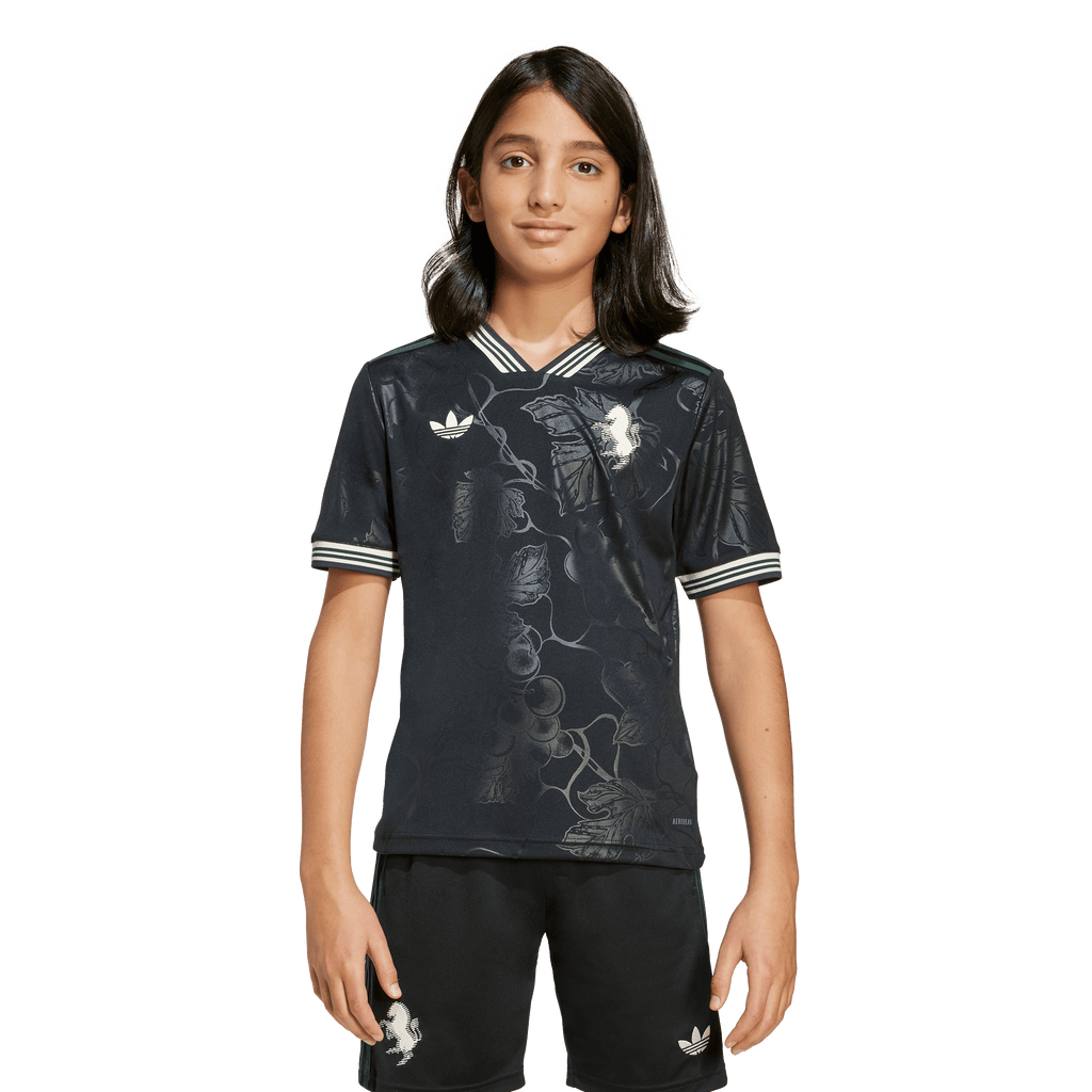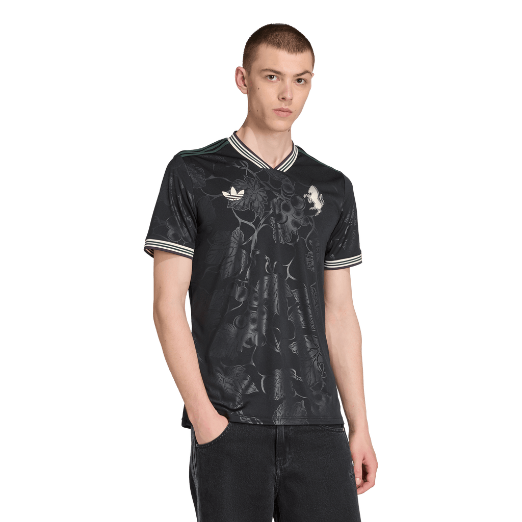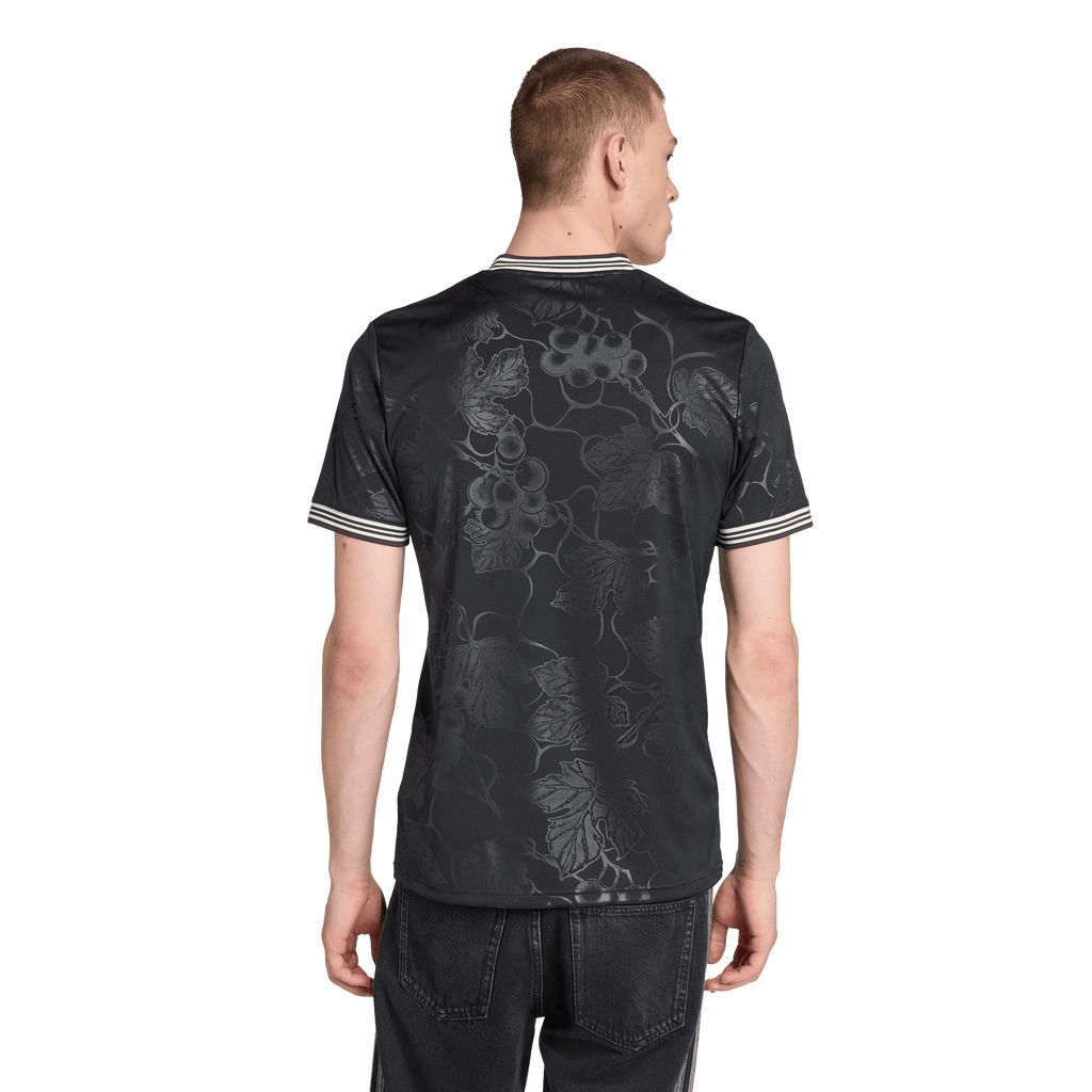 Raise a glass to your soccer heroes in a Juventus jersey that pays tribute to Piedmont's wine-making tradition. Standing out from black colors, an embroidered adidas Trefoil and classic club badge join subtle, vineyard-inspired graphics to produce an understated, elegant look. Created to keep fans comfortable and relaxed, this shirt features soft fabric and moisture-managing AEROREADY.