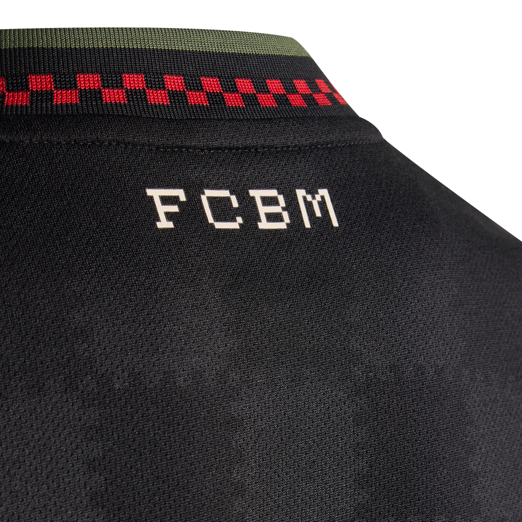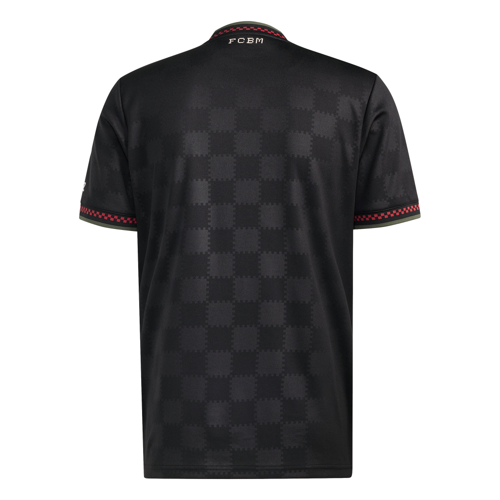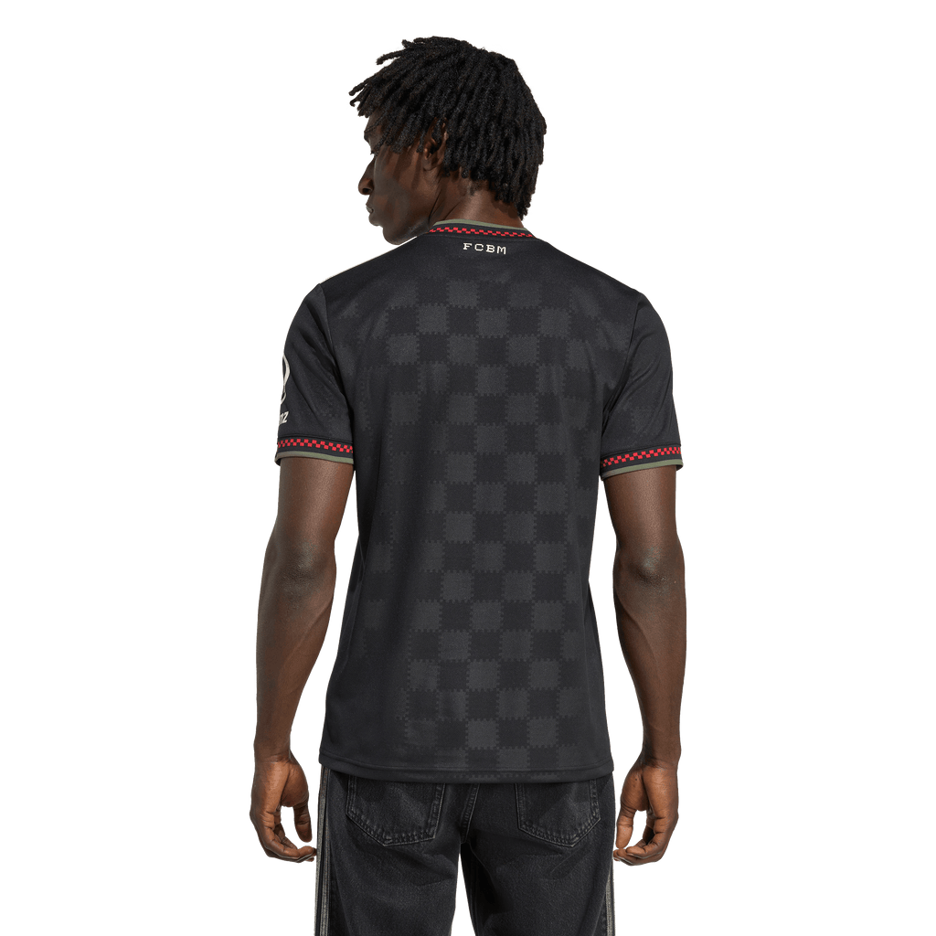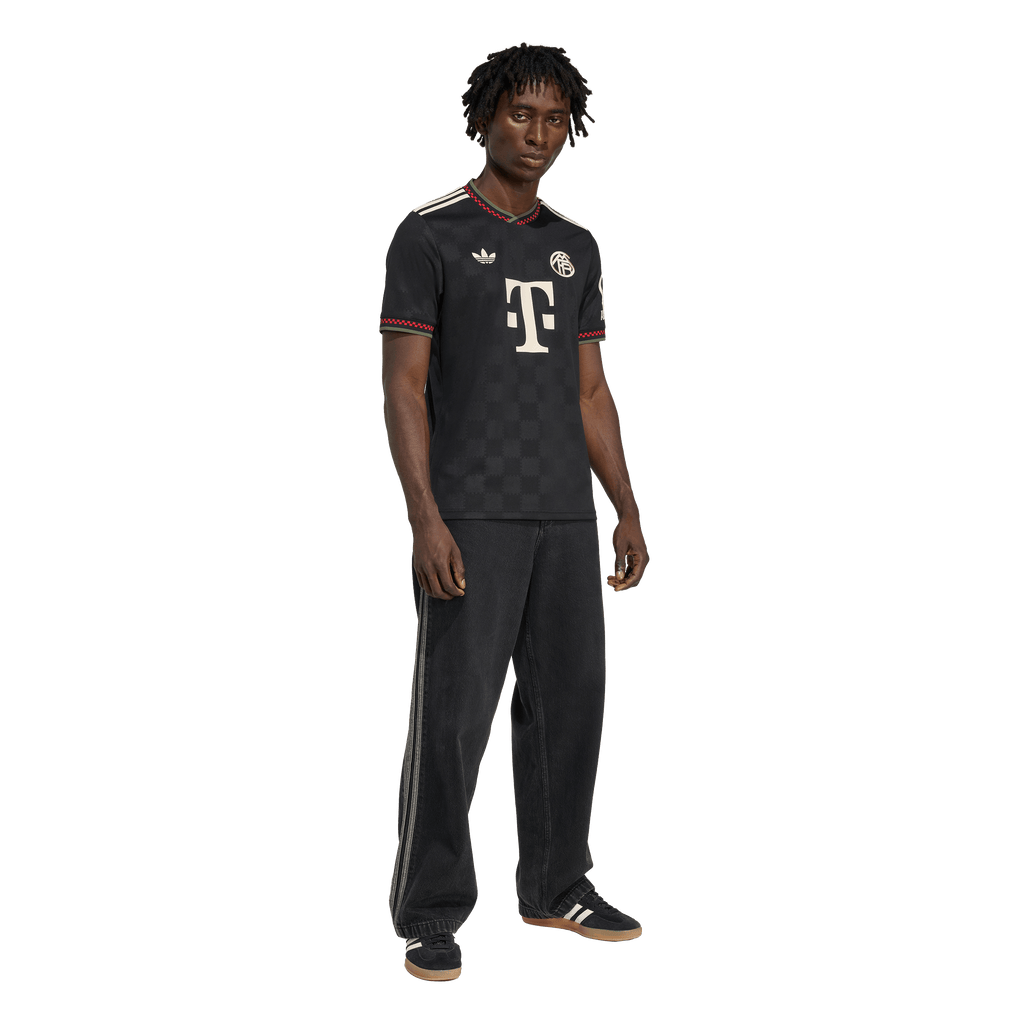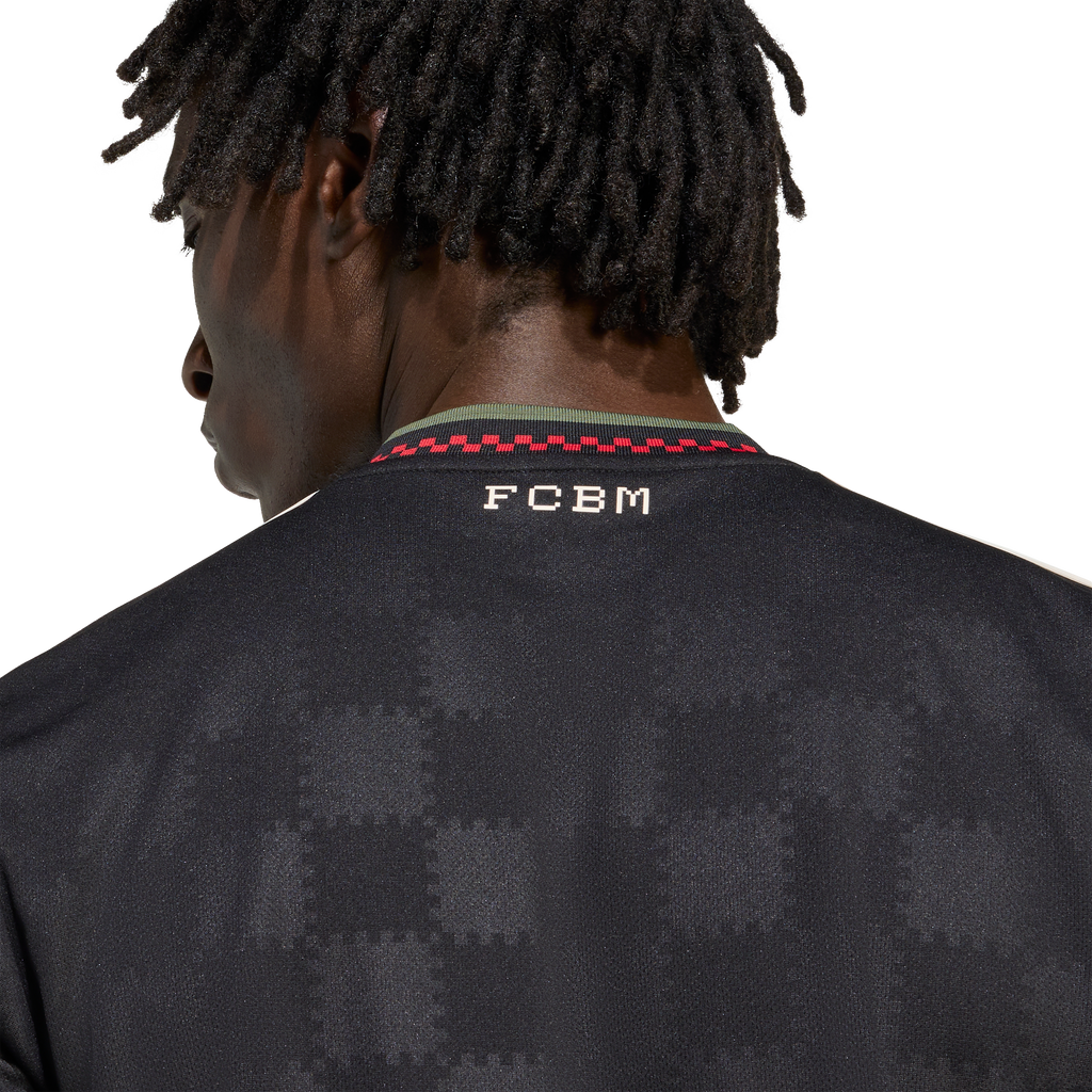 The subtle all-over design on this jersey nods to Munich's famous Marienplatz, where FC Bayern fans gather to celebrate the team's biggest victories. It's made from soft doubleknit fabric to keep soccer fans comfortable. Standing out against those super-wearable black colors, an adidas Trefoil and vintage embroidered badge provide a fashionable finish.