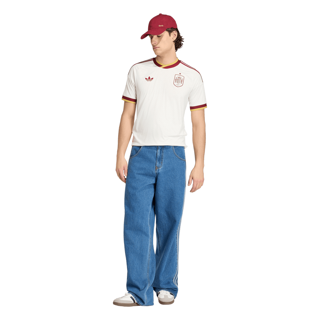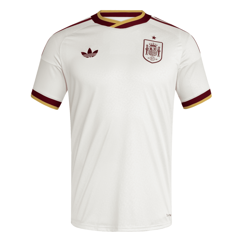 A celebration of classic Spanish literature, this adidas Spain 26 Away Jersey stands out with an intricate, repeating pattern inspired by old manuscripts and time-worn book pages.