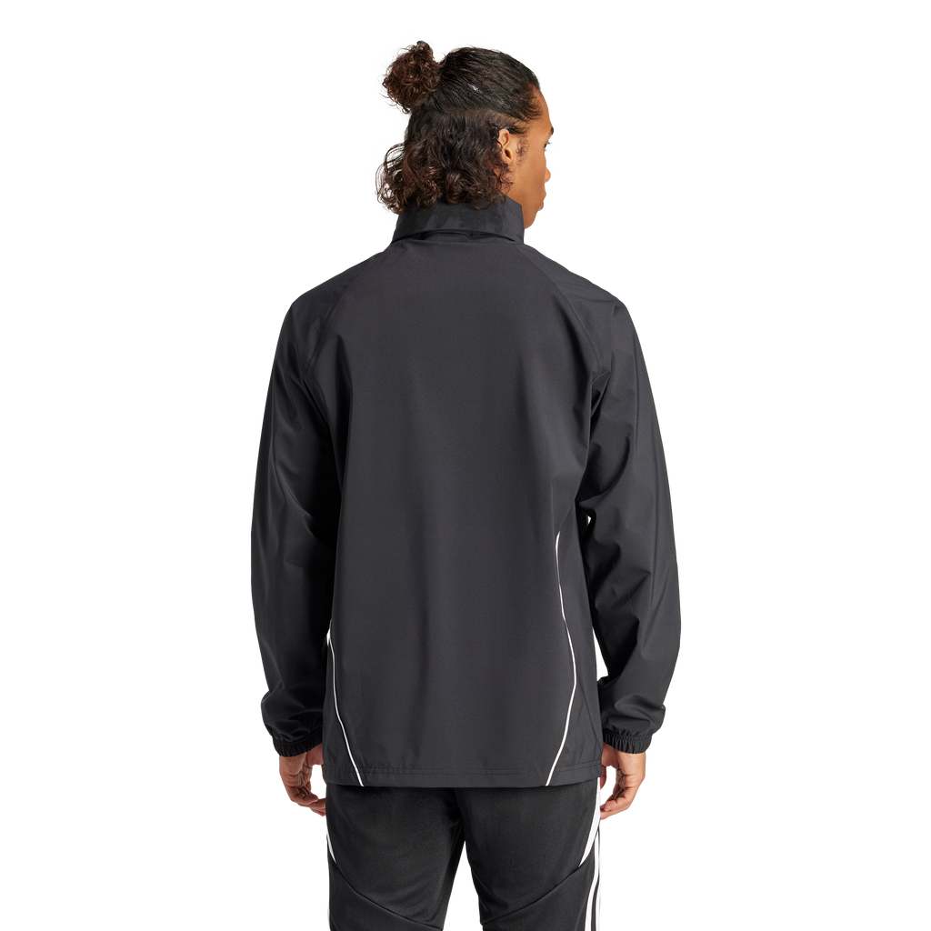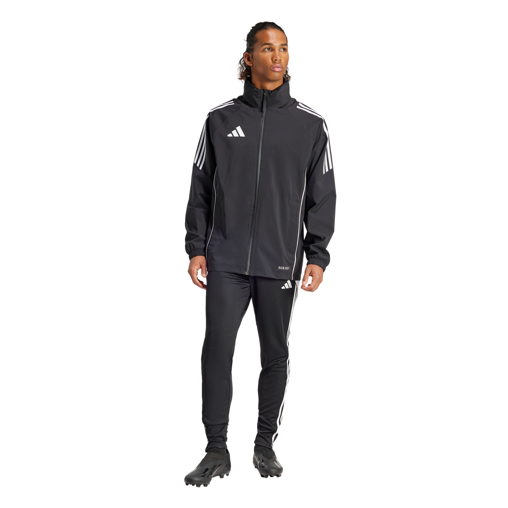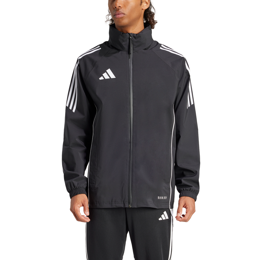 Take on the elements during football training in this adidas Tiro 24 jacket. When the wind and rain threaten to ruin your session, stay focused thanks to waterproof RAIN.RDY and the soft mesh lining. Then, once the worst is over, you can simply pack away the hood and get back to dominating every drill.