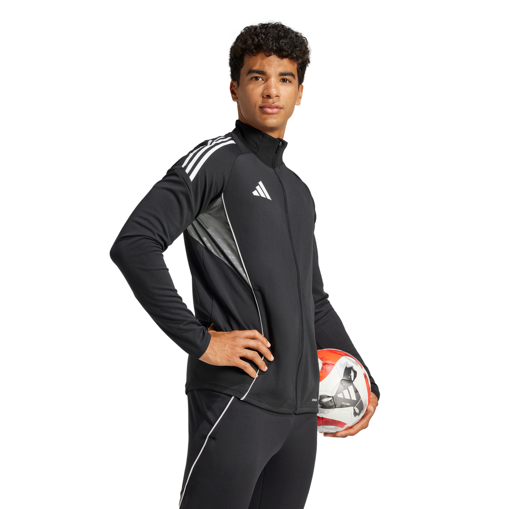 Don't let cold training sessions slow your pace. Simply zip up this Tiro 25 Competition jacket and carry on pushing. Its soft piqué fabric and moisture-managing AEROREADY ensure you stay comfortable until you're back in the changing rooms. Pull this top on with the range's training pants for a professional-looking adidas football ensemble.