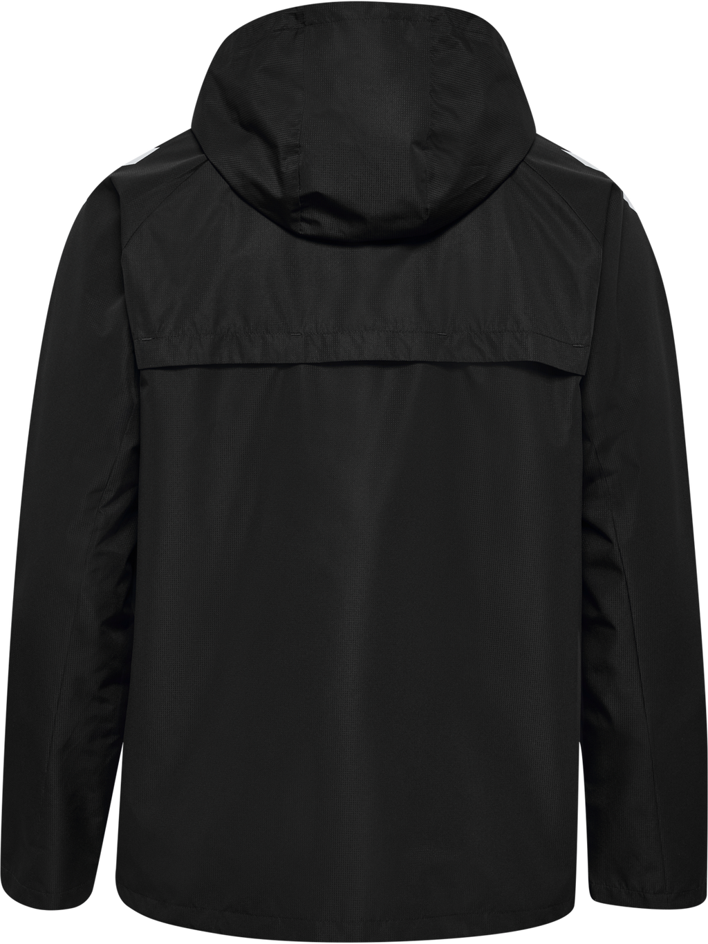 The hmlLEAD 2.0 ALL-WEATHER JACKET is crafted from durable woven material and features side pockets for storage. It has a fluorine-free, water-repellent finish, a packable hood with an adjuster, and built-in ventilation zones for breathability.