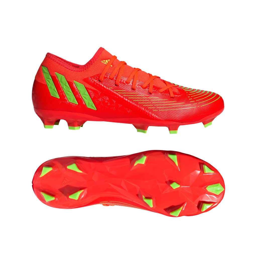 Swerve. Control. Power. adidas Predator has all angles covered. Hit the pitch and find your edge in these firm ground football boots. Deployed across their low-cut coated textile upper, grippy Control Zone print assists you with every touch of the ball. Underneath, an eye-catching, angular TPU outsole ensures you stay in charge on dry natural grass.