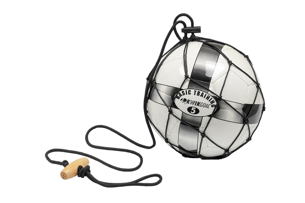 The 5B2 Kwik Kicker has a wooden handle with a toggle drawstring to secure the ball. The Kwik Kicker holds any size ball and is ideal for players looking to get extra touches without having to chase the soccer ball every time.