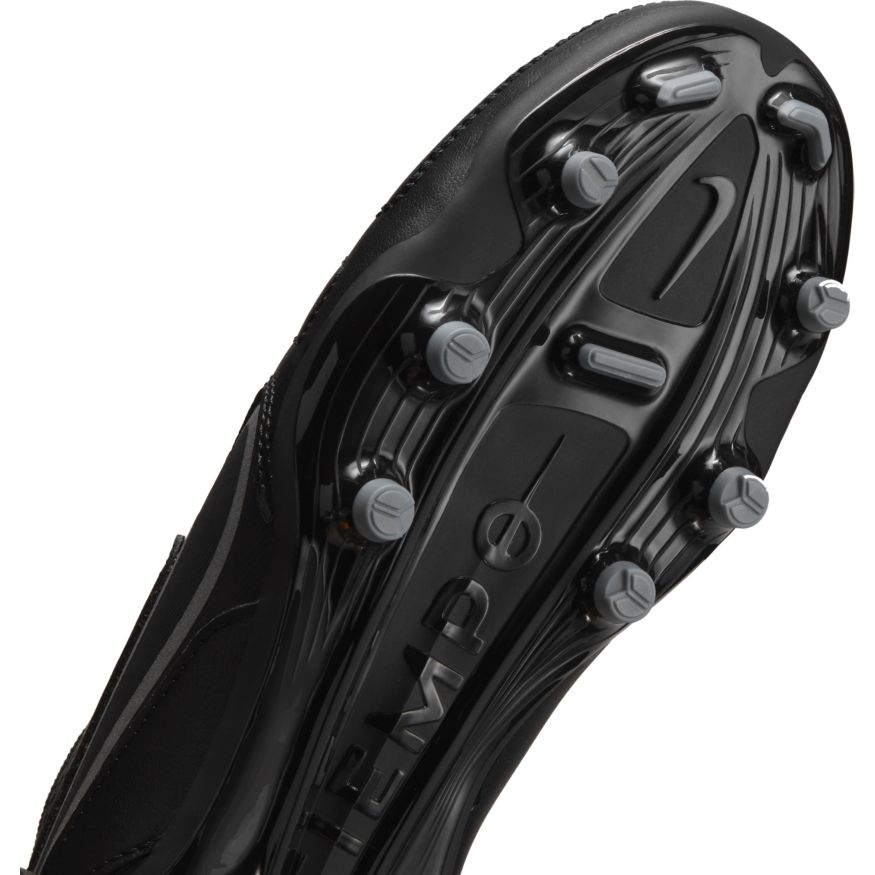 The Nike Jr. Tiempo Legend 9 Club MG is a low-profile design that's reinvented for fast play. The upper features raised areas throughout the strike zone for precise dribbling, passing and shooting, while studs on the bottom provide traction for quick cuts and sudden stops.