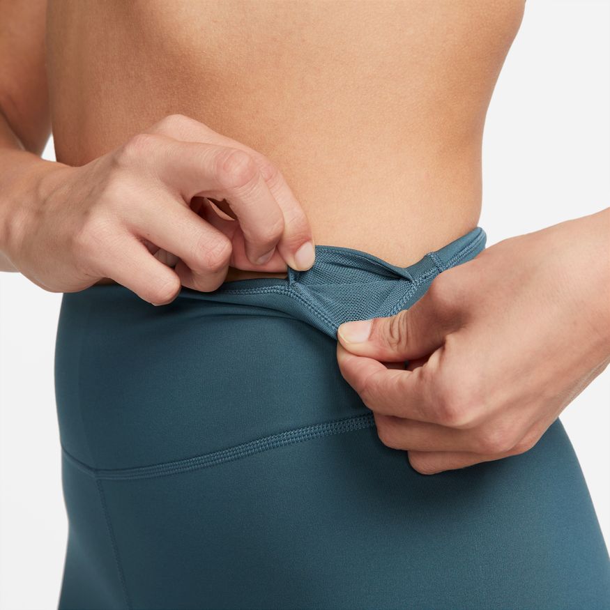 The design includes 3 hidden pockets in the mid-rise waistband to keep you ready for whatever you tackle in a day. The pocket at the back is big enough to hold a phone.