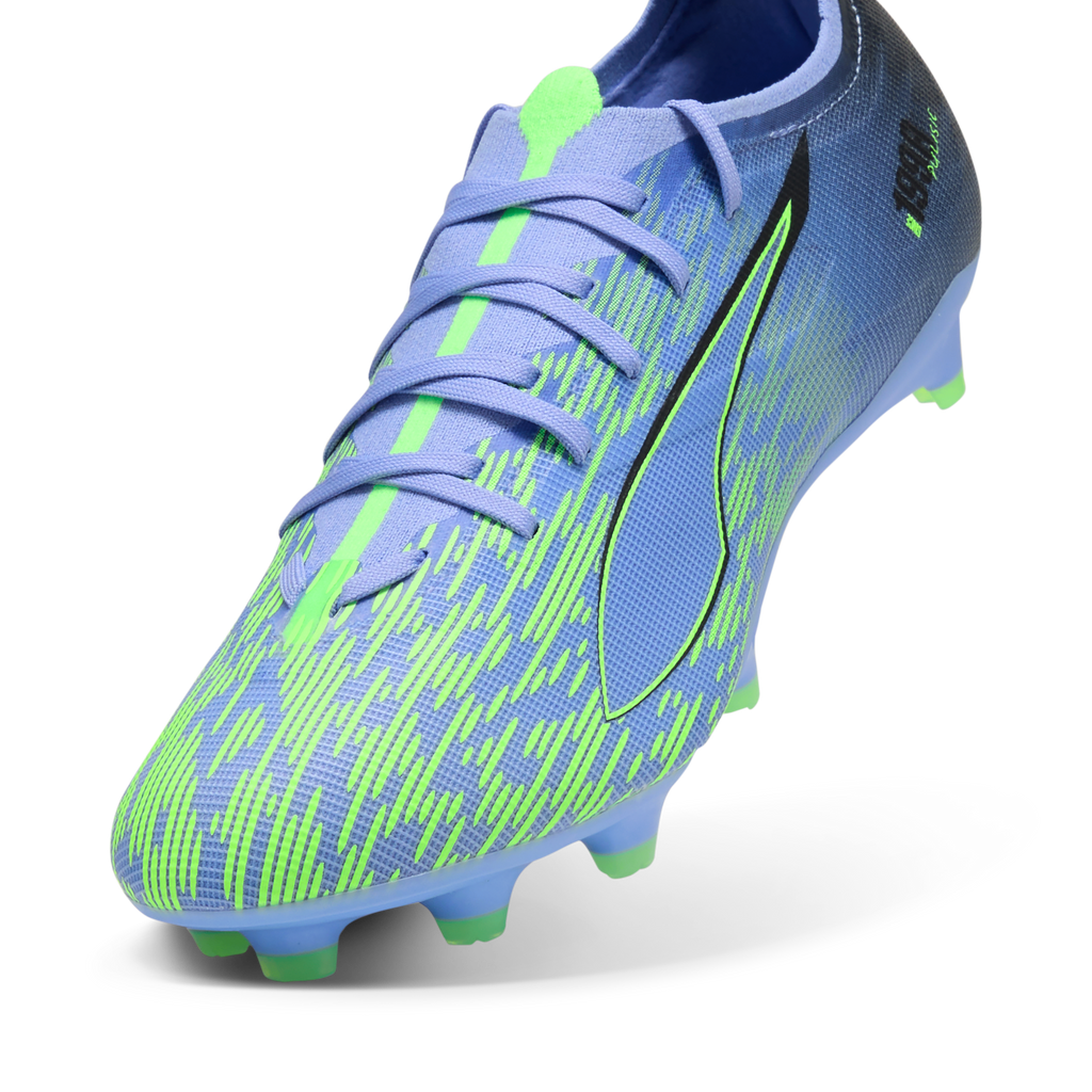 How fast is the ULTRA 5 MATCH? Fasten your seatbelt. Perfect for up-and-coming speed merchants, this version of ULTRA comes with PUMA's brand-new SPEEDSYSTEM outsole and FastTrack stud design for explosive traction. Three rounded studs on the lateral side let you switch between firm ground and artificial grass. Wherever you play, play at full throttle.