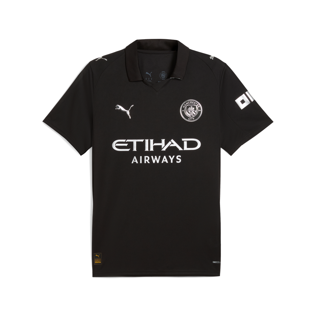 The earliest-known kit in Manchester City’s history dates back to 1884, when the football club was based in Gorton. The 25/26 Away Kit is a tribute to the early Cityzens, reimagined with a nod to the club's innovative spirit. The all-black design takes inspiration from that historic kit, combined with metallic details to celebrate the timeless essence of Manchester City Football Club.